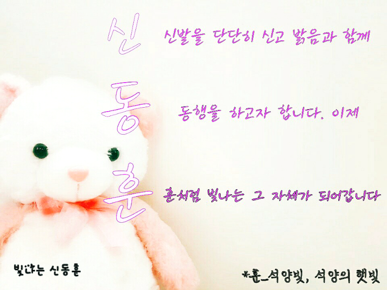우리 모두에게 밝음을 빛내준 신동훈님에게 빛나는 사람들이 삼행시 선물도 함께 준비했습니다. 오늘도 내일도 빛나는 신동훈님을 응원합니다. />▽</