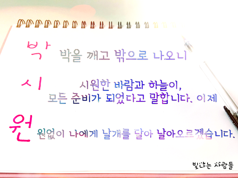 우리 모두에게 밝음을 빛내준 박시원님에게 빛나는 사람들이 삼행시 선물도 함께 준비했습니다. 오늘도 내일도 빛나는 박시원님을 응원합니다. />▽</