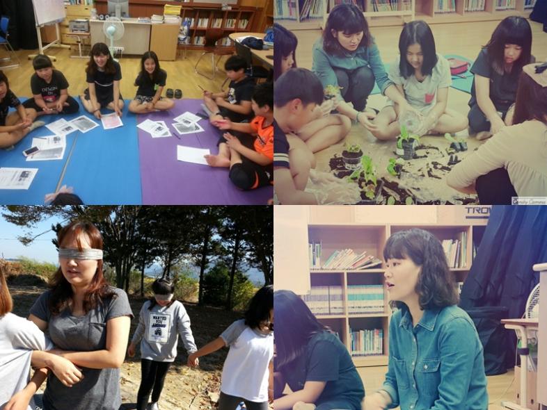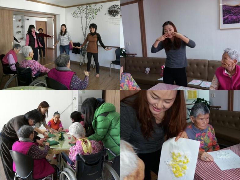 노인복지관, 장애인 복지관, 초등학교, 다문화 센타 등 다양한 연령과 계층을 대상으로 자기봉사를 통해 밝은 세상을 만들어