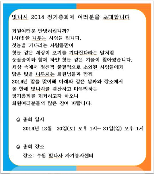 빛나사 2014 정기총회에 여러분을 초대합니다!!!