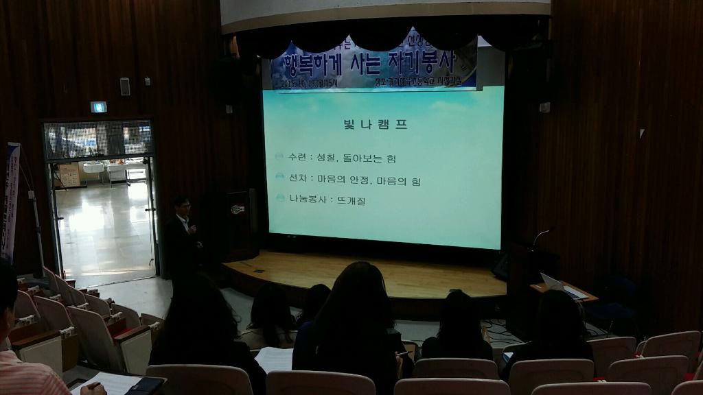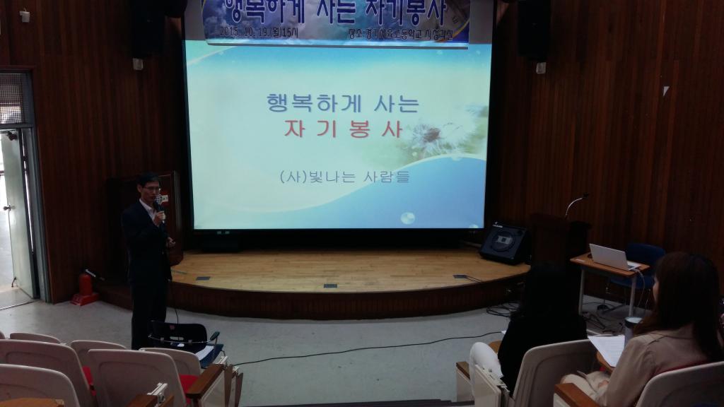 '행복하게 사는 자기봉사'라는 주제로 빛나사 대표님께서 강의를 하셨습니다.