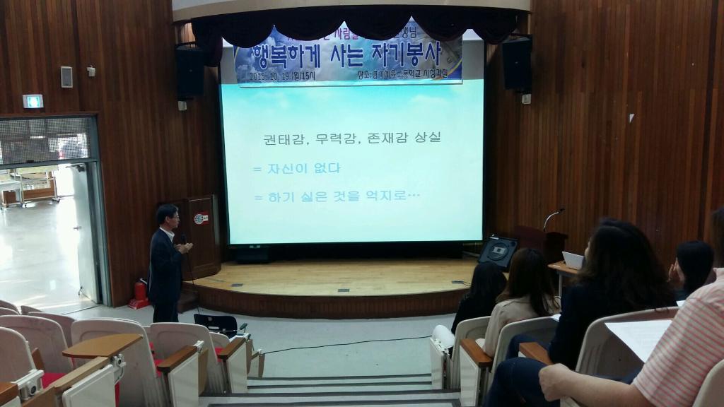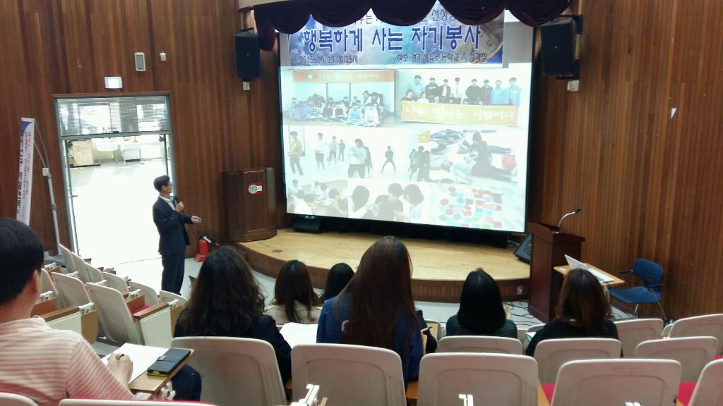 10월 19일에 수원에 있는 경기체육고등학교에서 자기봉사 설명회가 있었습니다.