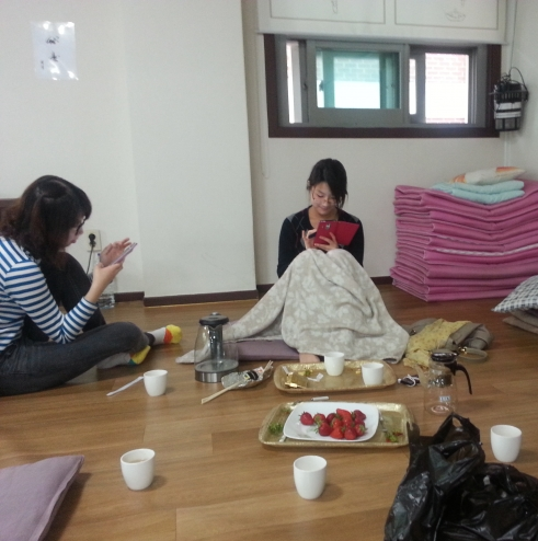 (간식으로는 뜨신 차 그리고 딸기와 김밥 냠냠.)