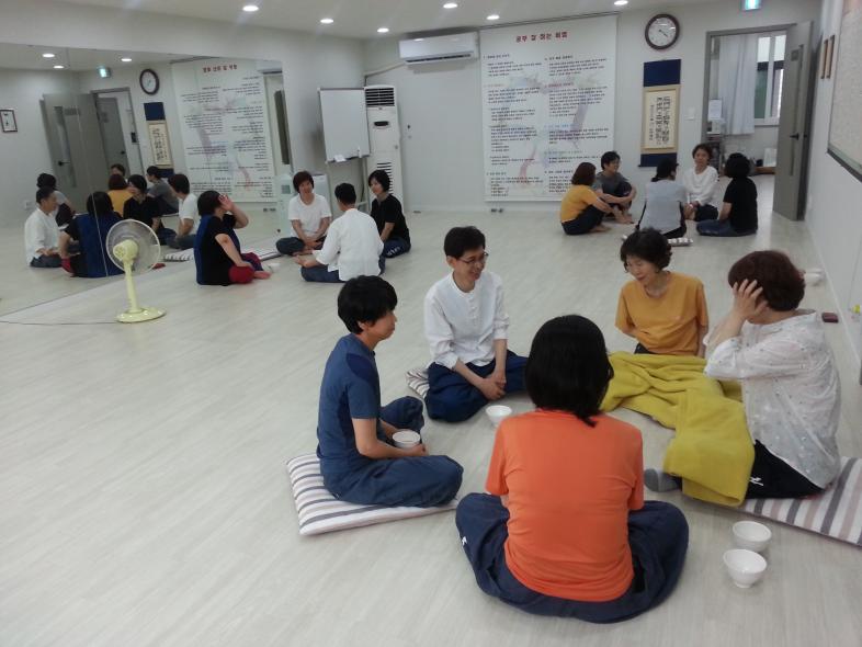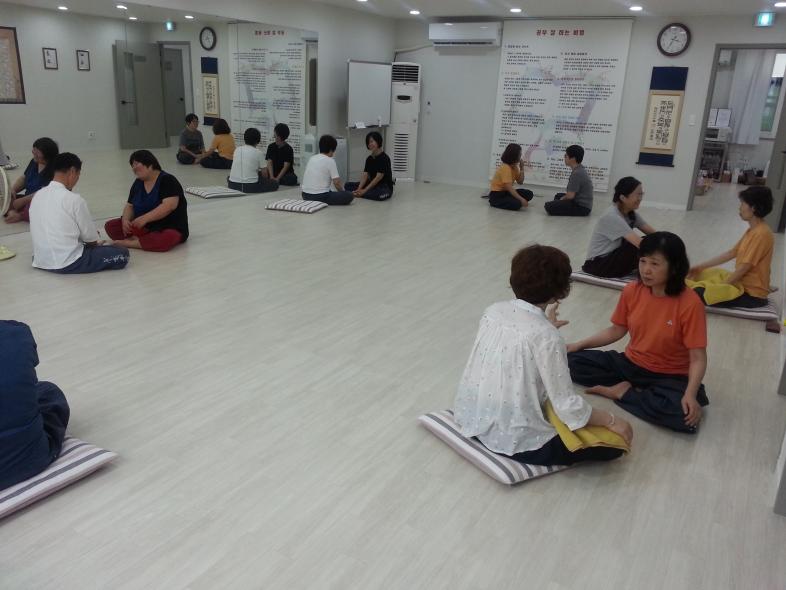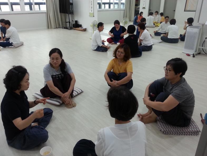* 진행순서 : 행법, 수련 >>> 2인 1조 자신의 삶 이야기하기 >>>5인 1조 자 신의 장점, 칭찬, 격려하고 사랑하기, 상대의 장점, 칭찬, 격려하고 사랑하 기 >>> 전체 피드백 >>> 정리 및 다음모임 공지하기