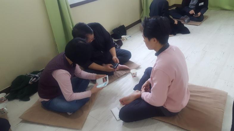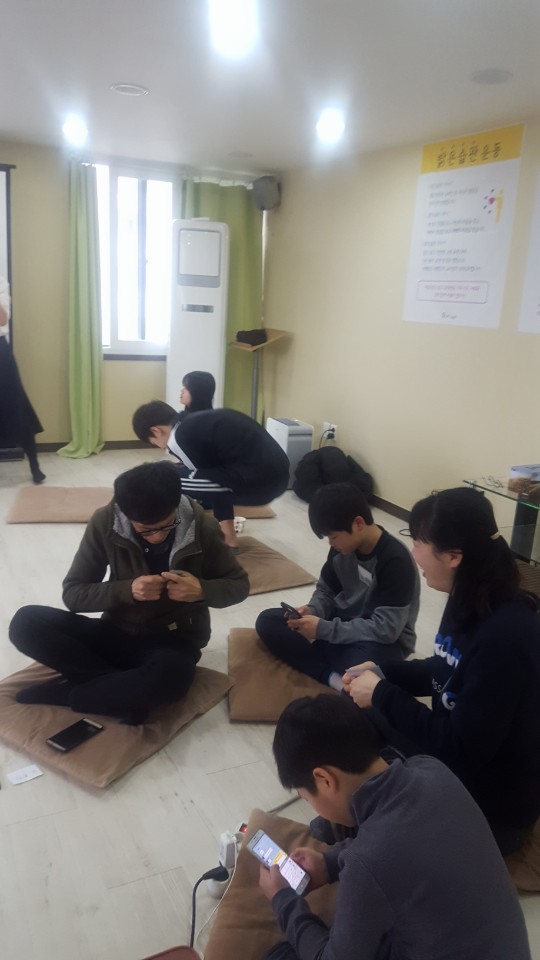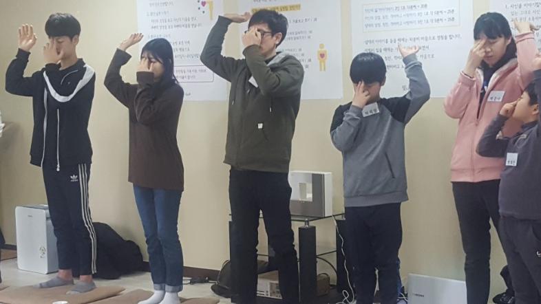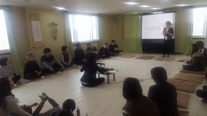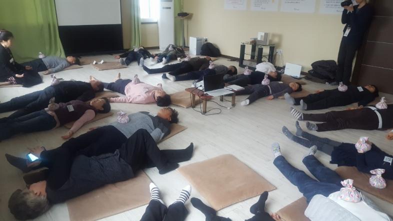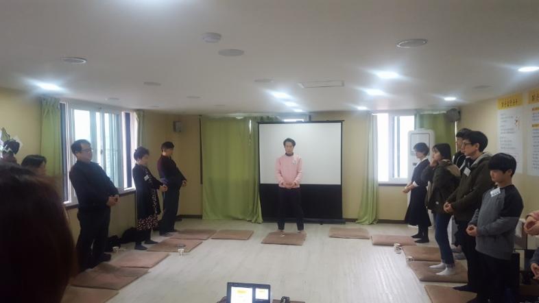 밝은습관 가지기 실천항목 중 9번 행공과 10번인 와식 수련을 체험해보았습니다. 와식 수련 때는 빛나 주머니를 올려 자신의 호흡을 더 느껴보았습니다.