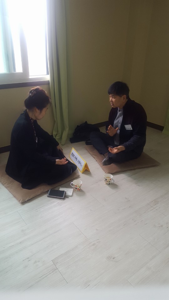 각각 10분씩 자신의 삶 이야기를 하며 진솔하게 자신에 대해 표현하는 시간을 보냈습니다. 자신의 삶을 이야기하는 존재는 자기 자신에게 집중하며 지난 모든 시간을 밝음으로 보며 이야기를 하였고, 듣는 사람은 경청의 자세로 있는 그대로 상대의 말을 들었습니다.