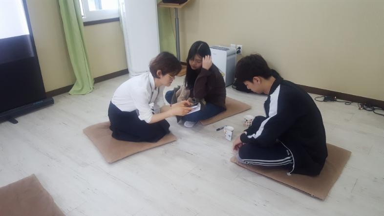 그 후 5분씩 자기 칭찬을 하였습니다. 처음엔 쑥스러워하였지만 금새 부드럽고 밝은 분위기가 되었습니다^^자기 칭찬이 끝난 후 상대방 칭찬도 5분씩 하였습니다.