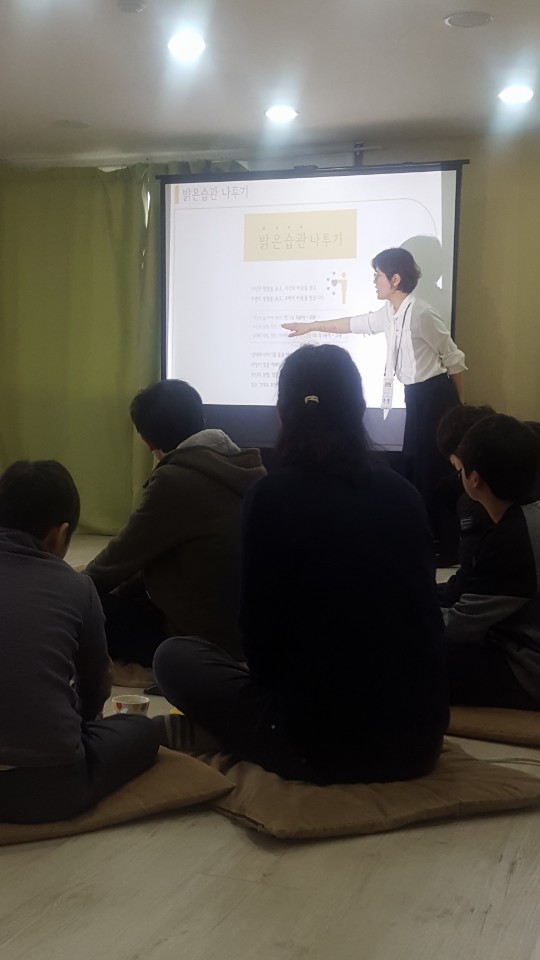 간단한 오리엔테이션과 함께 밝은습관운동이 무엇인지, 밝은습관운동이 왜 필요한지 등에 대한 설명을 하였습니다.