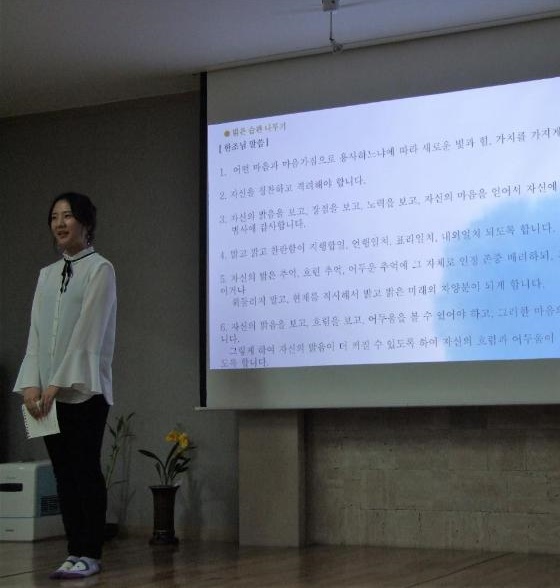 5인 1조로 5분씩 돌아가며 자기 칭찬하기 후