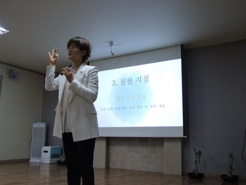 봉사원 화명실장님께서 실천 지침을 말씀하십니다.