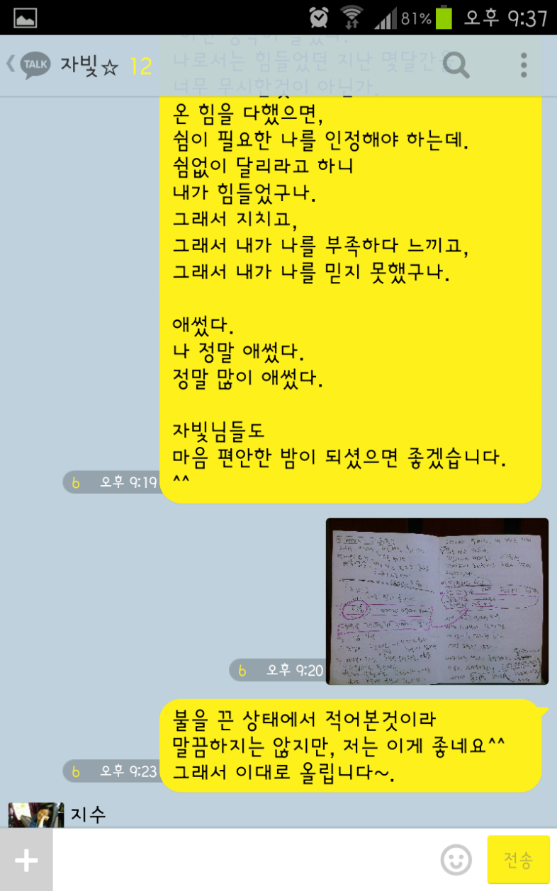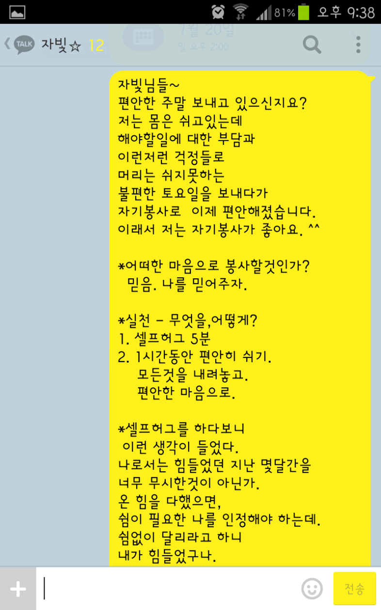 자빛방에 올린 저의 오늘 자기봉사 입니다.^^