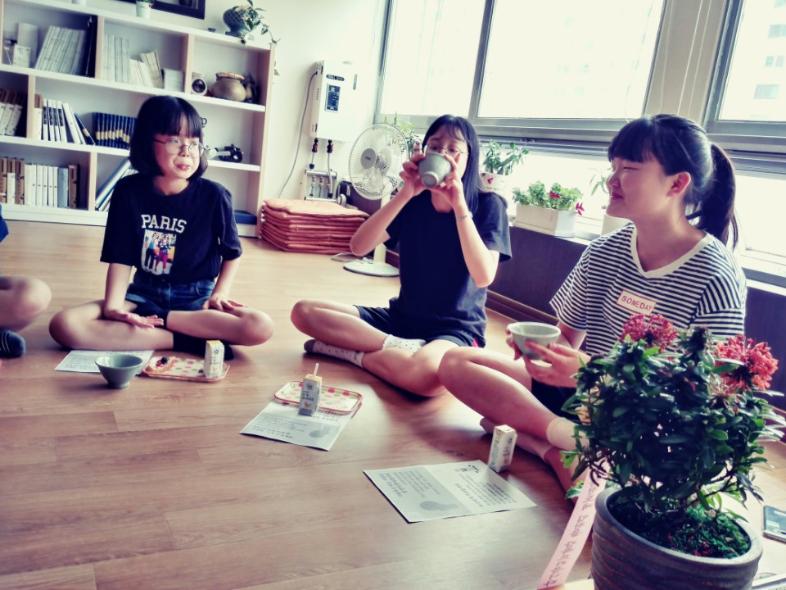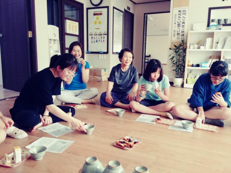 자기봉사 밝은 습관 운동 시간을 아침 10:00부터 기다려 반시간 가량 후 도착하여 선차를 한잔씩 나누고 이점옥 봉사자께서 마련해 온 빵 젤리 간식으로 대화시간을 갖으며 왜 밝은 습관 운동을 해야하는지에 대해 설명하며 차와 간식 시간을 가졌습니다.