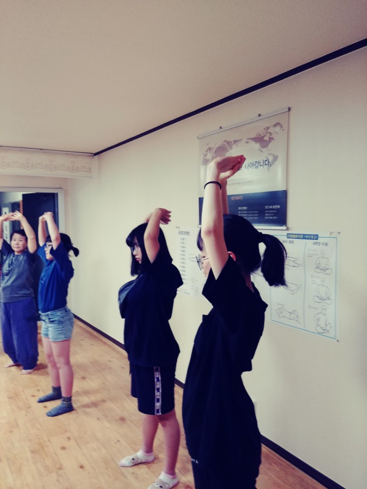 몸과 마음을 푸는 운동시간을 20여분 갖은후, 행법을 1회하고 와식수련 15분 갖으면서 심법을 잘 설정하도록 했습니다.