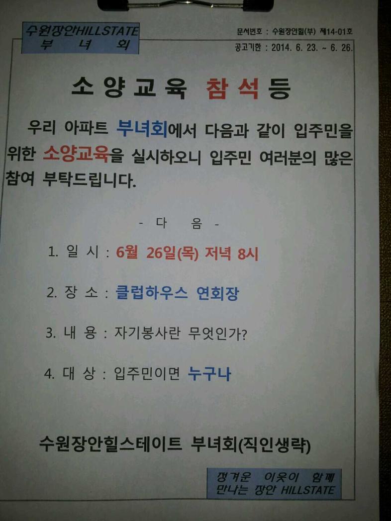 지난 달, 6월 26일 저녁에 수원의 한 아파트에서 자기봉사 활동을 하였습니다.