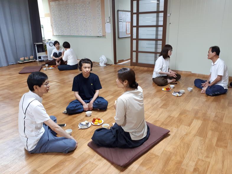 자신의 이야기하기 10분, (말,말투,행동)밝음을 보고 듣고 말하기 10분씩, 한달동안 살아온 각자의 이야기를 진솔하게 풀