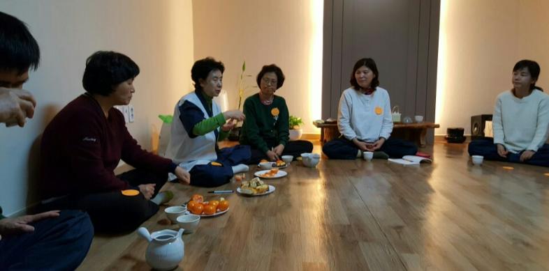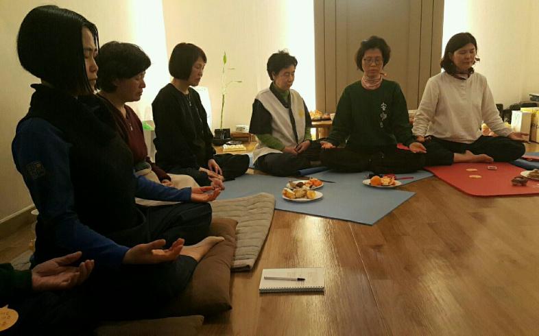 자기봉사행법 24분 후, 빛나주머니로 와식수련 12분, 자기수련 12분 시간을 가졌습니다.