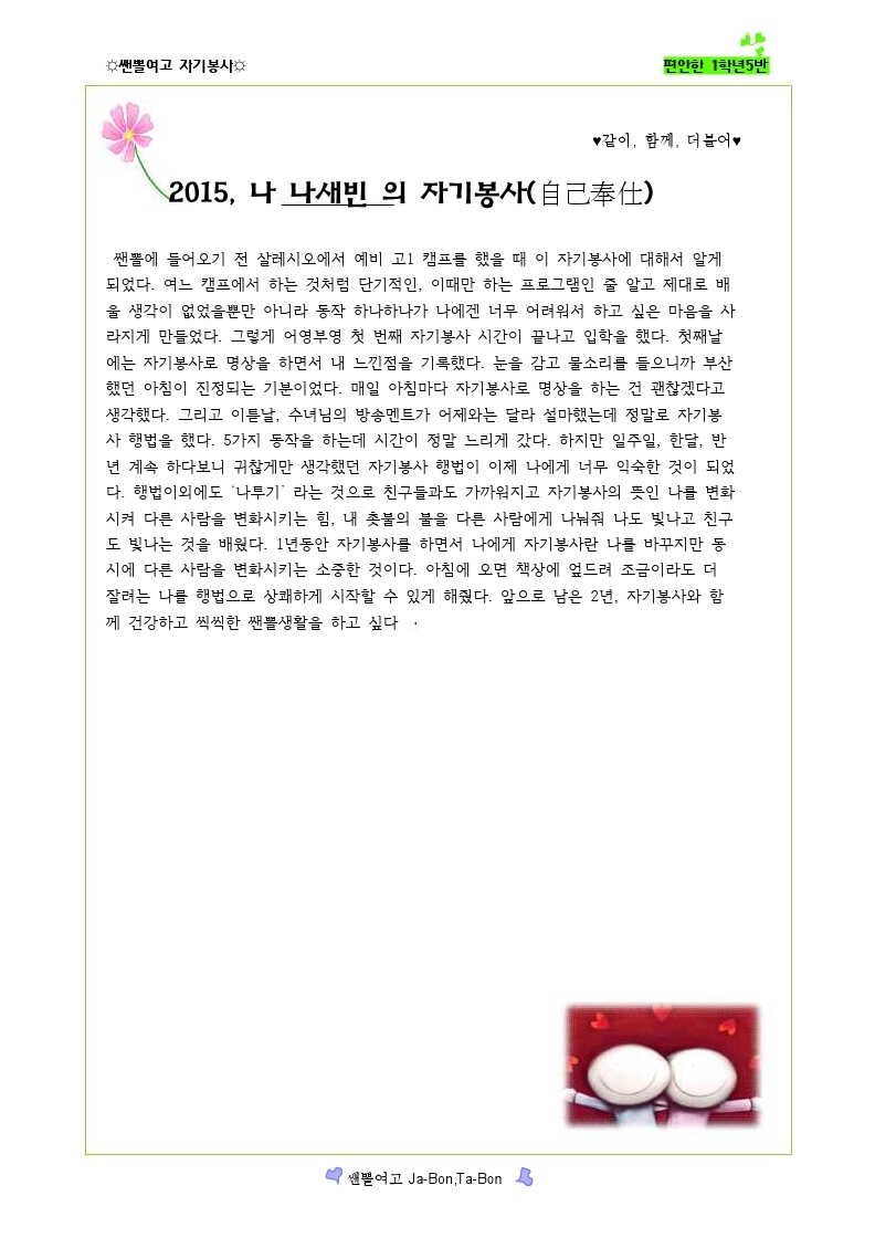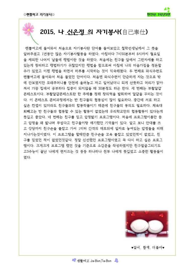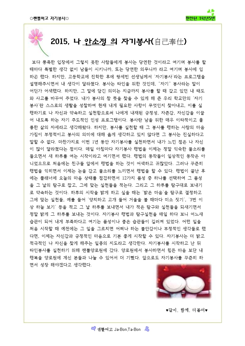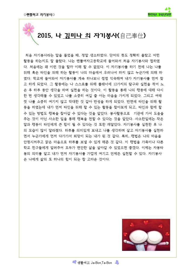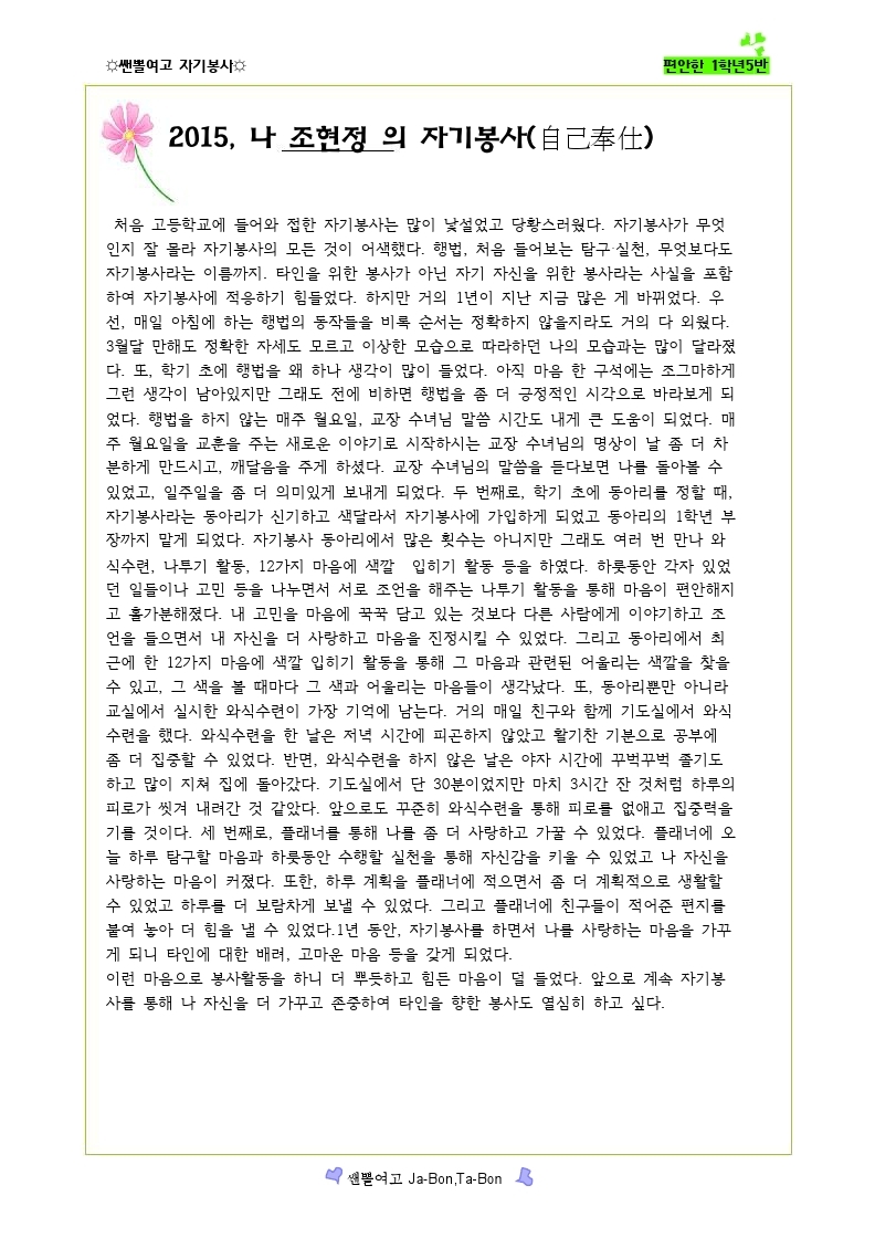 쌘뽈여고 자기봉사 사례집 1-5