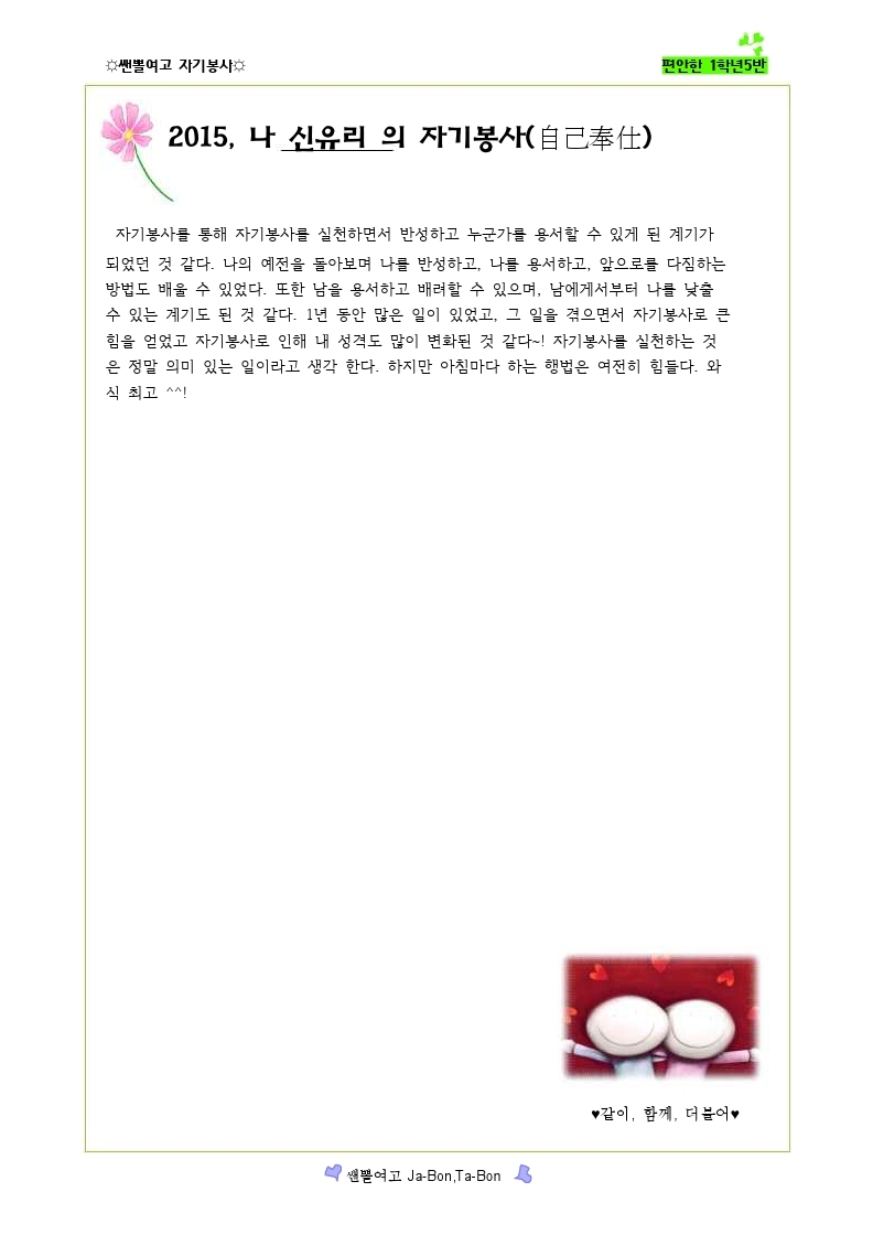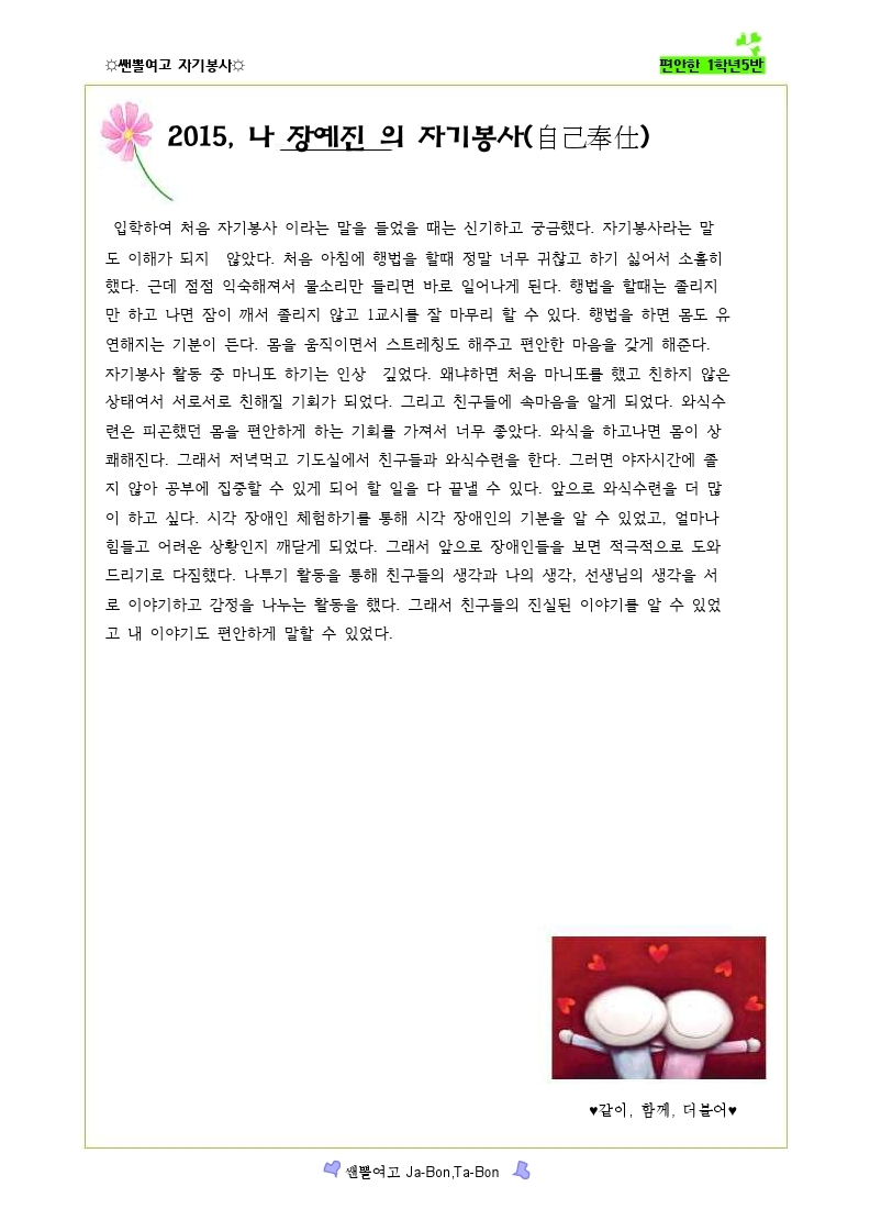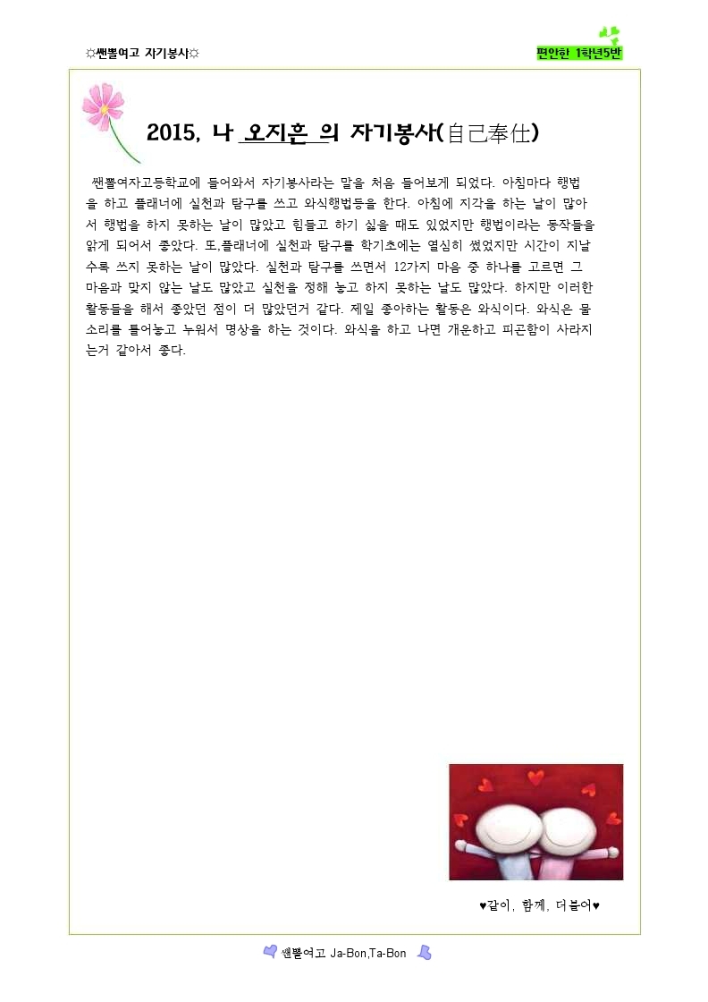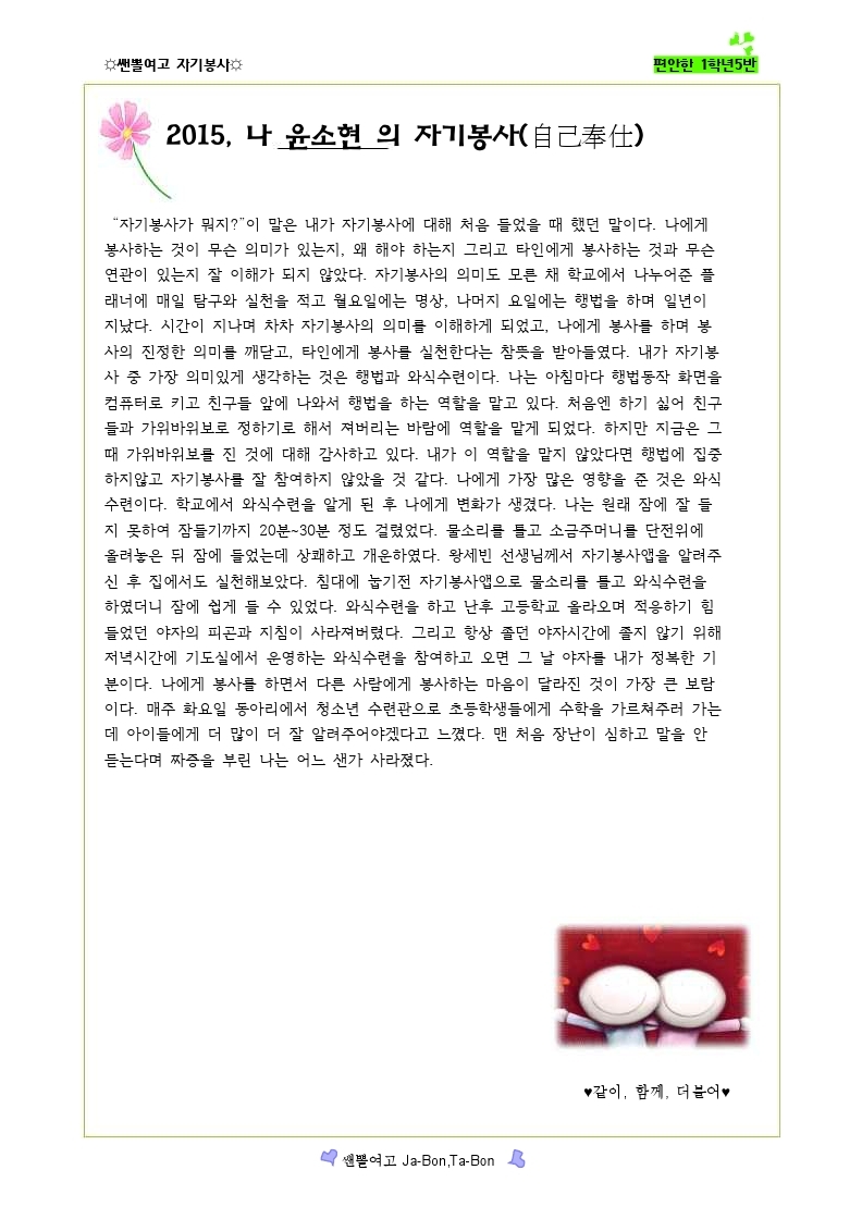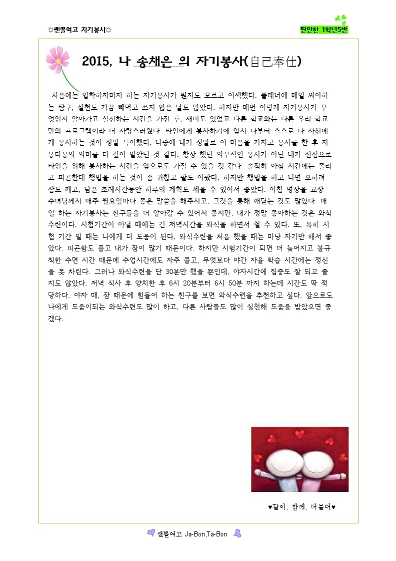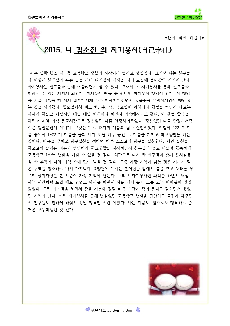 쌘뽈여고 자기봉사 사례집 1-5