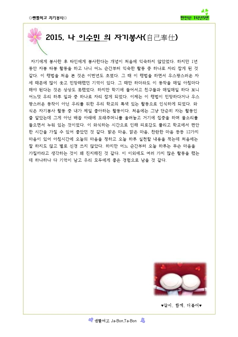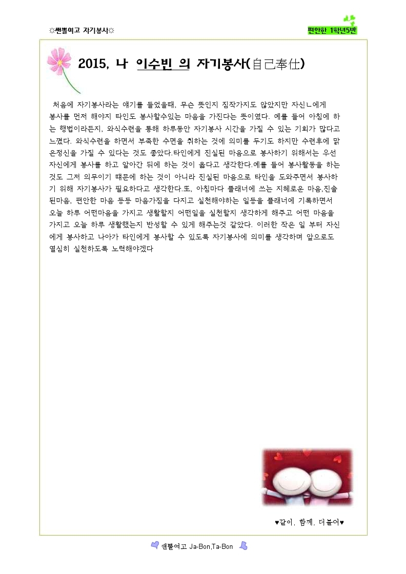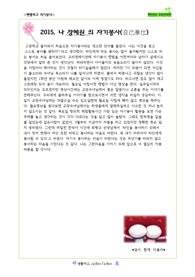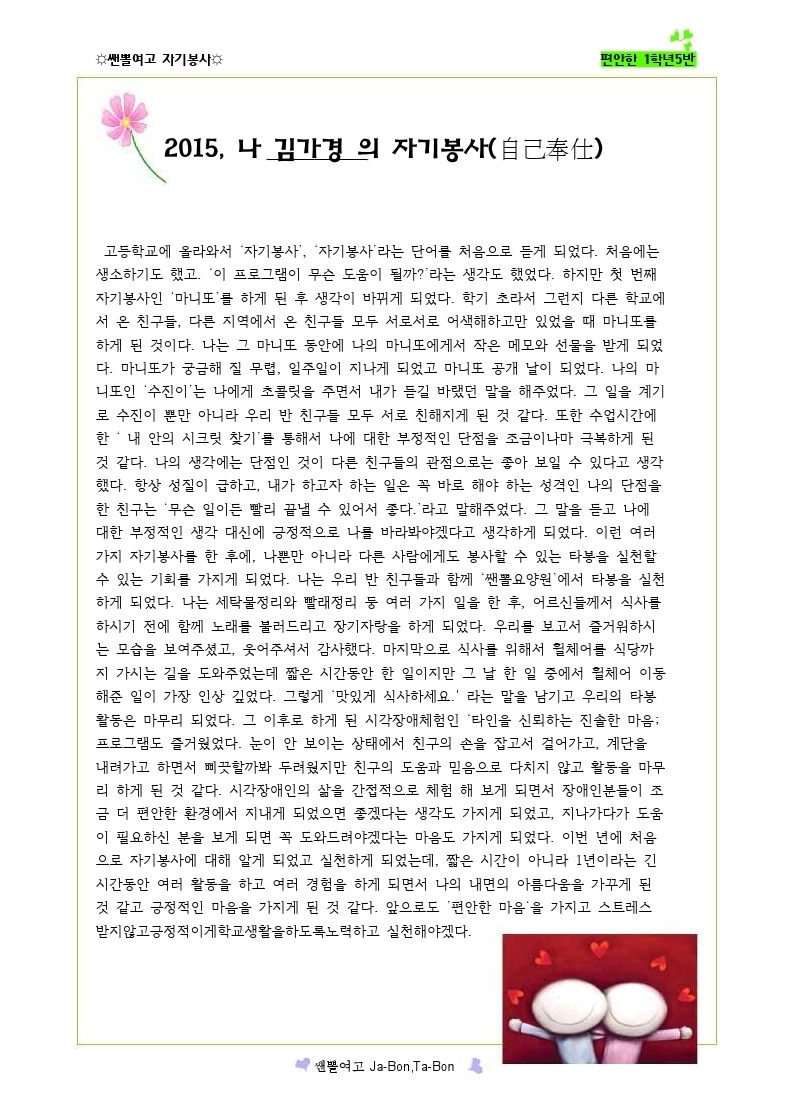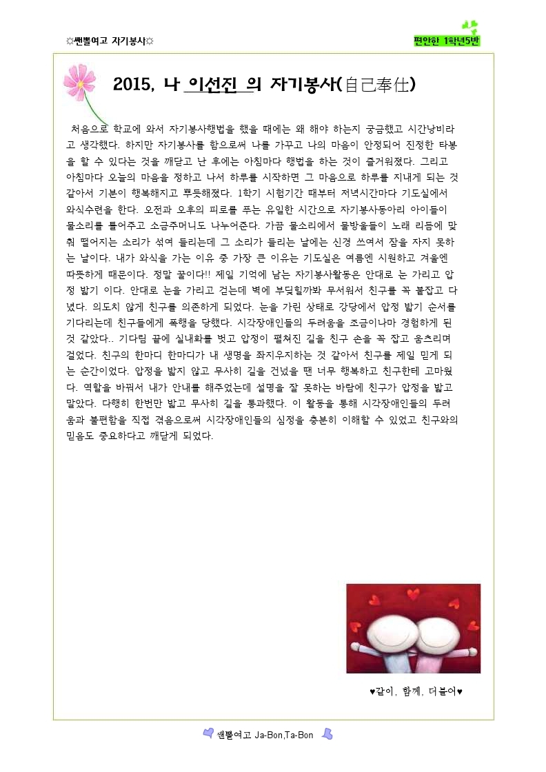 쌘뽈여고 자기봉사 사례집 1-5