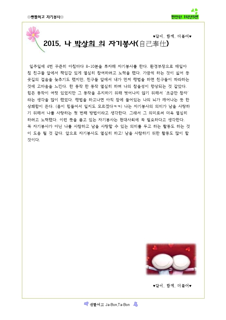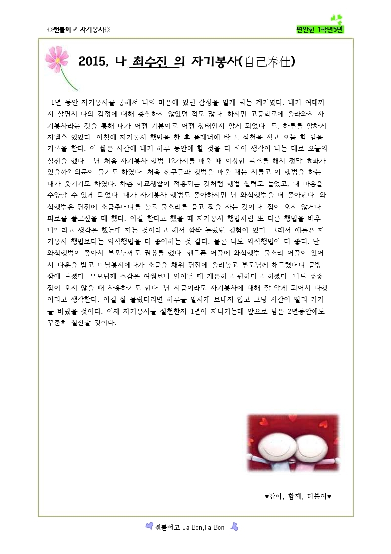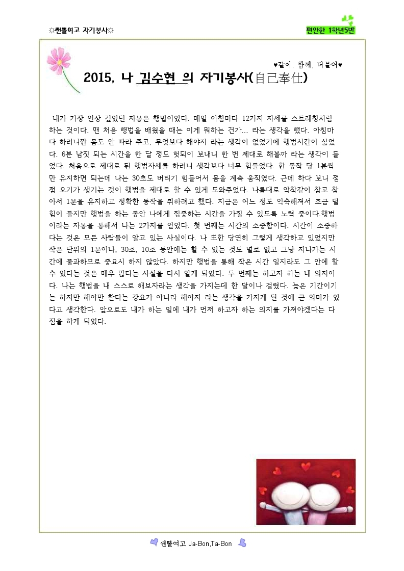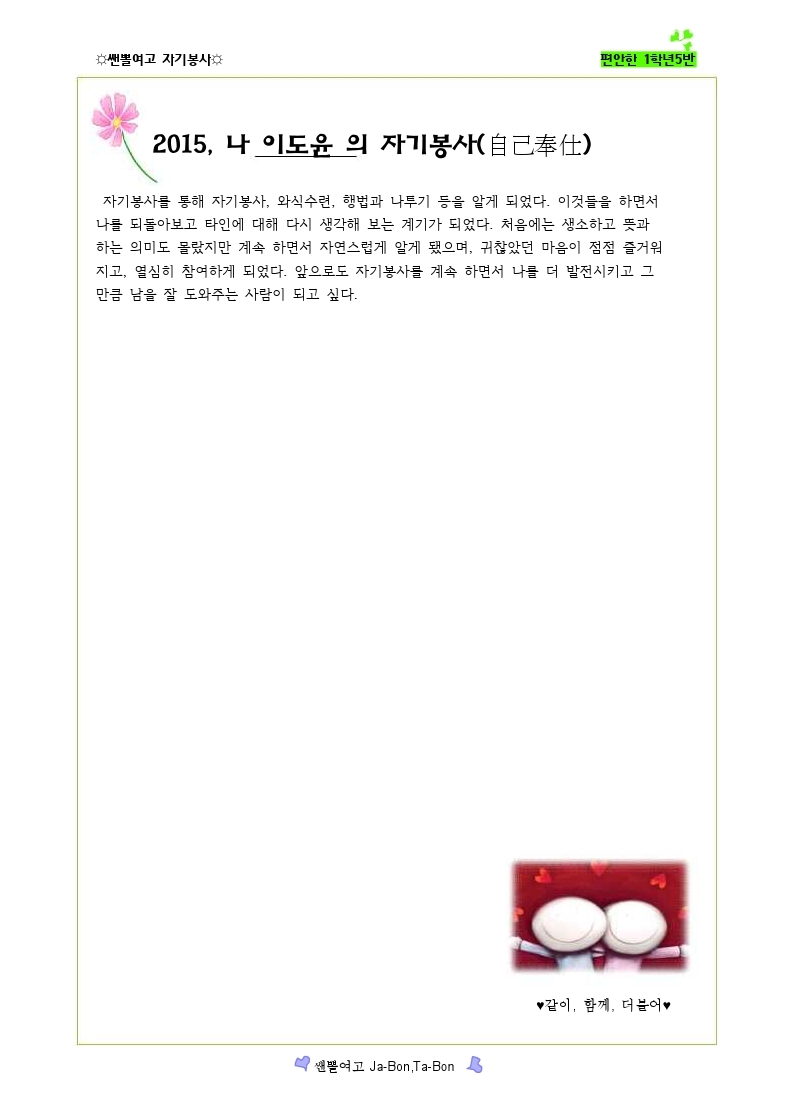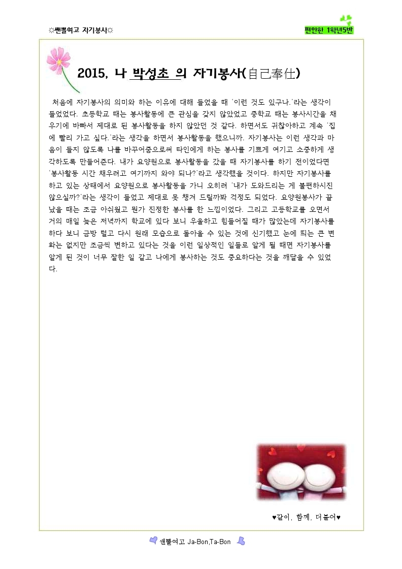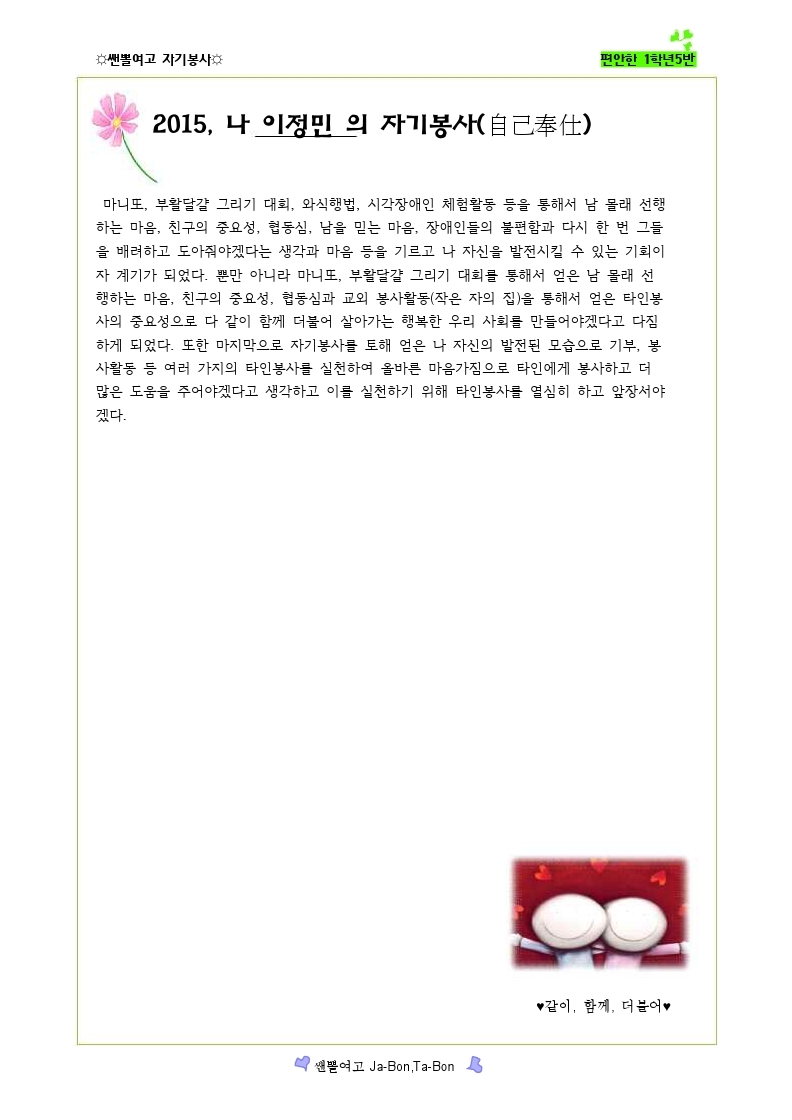 쌘뽈여고 자기봉사 사례집 1-5