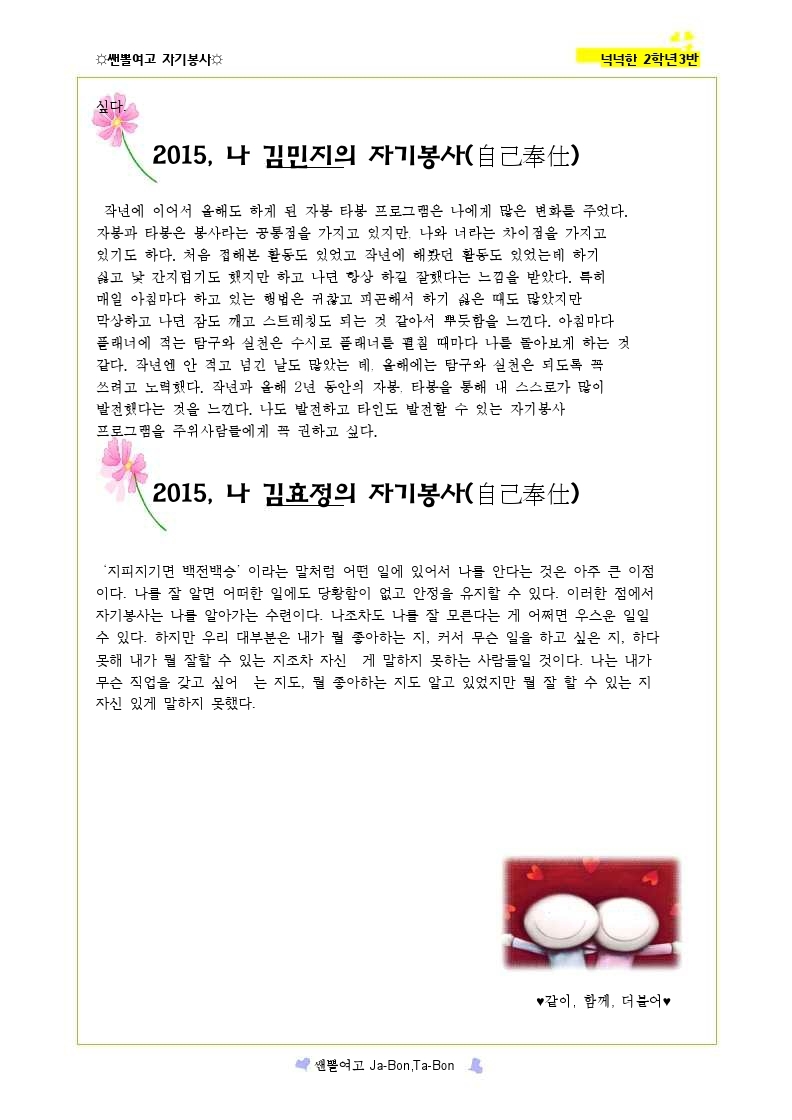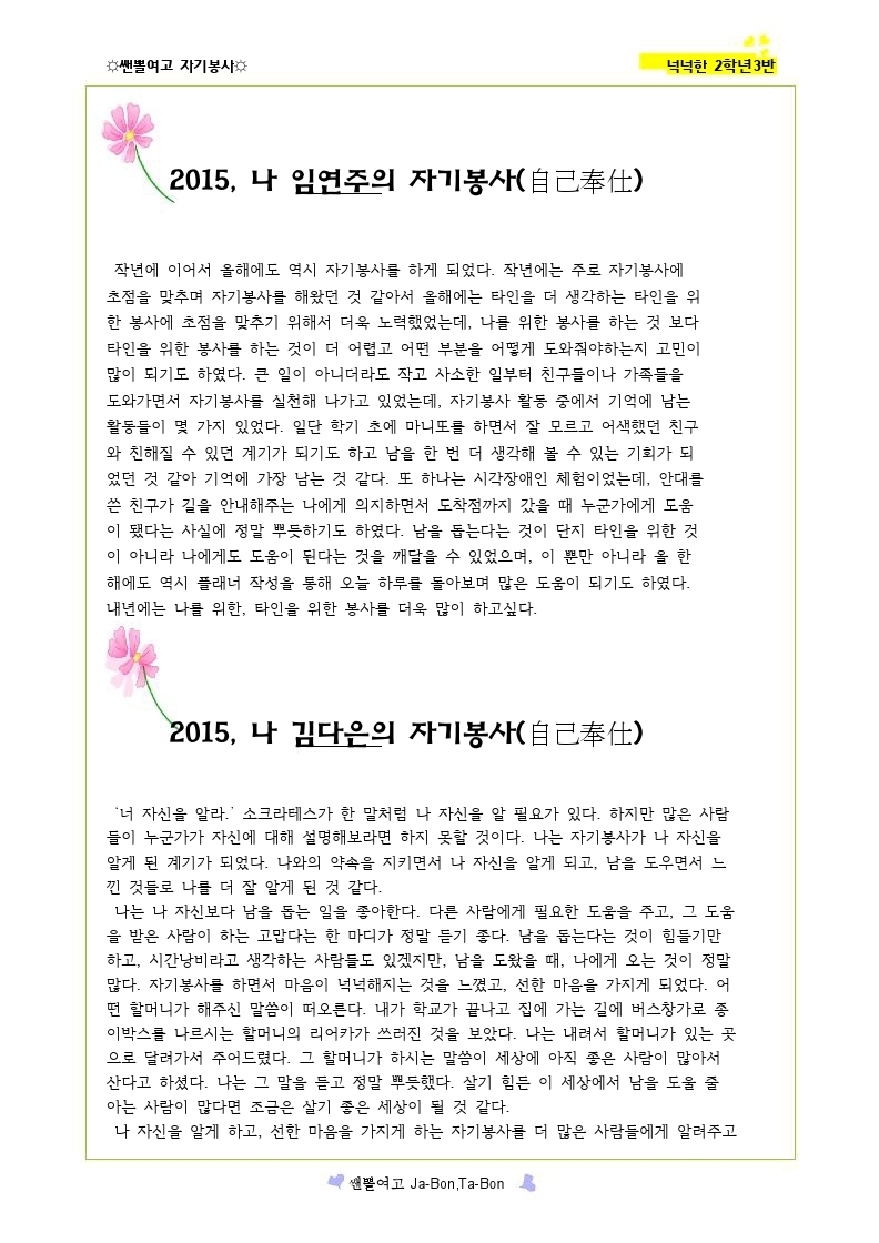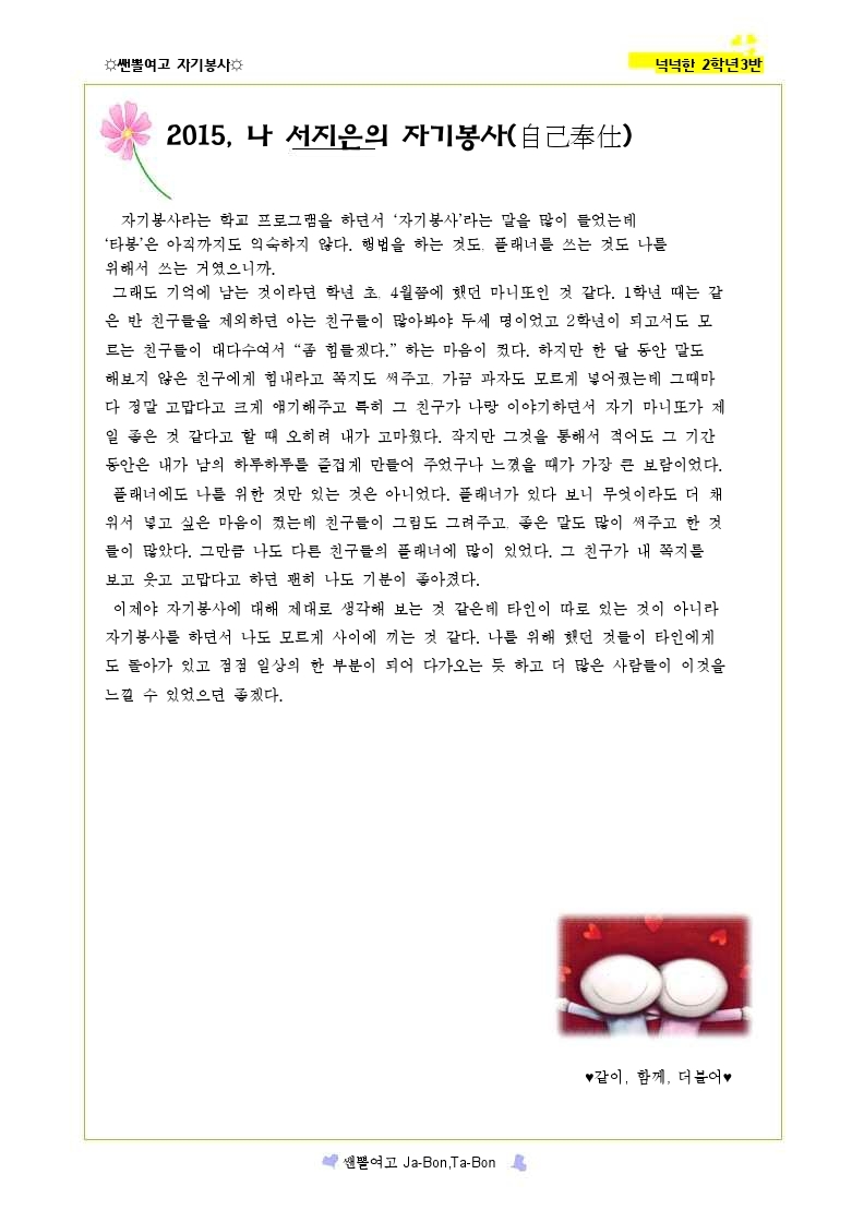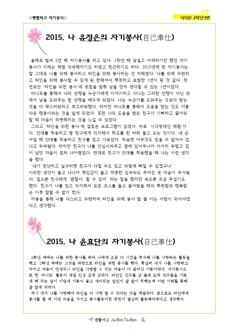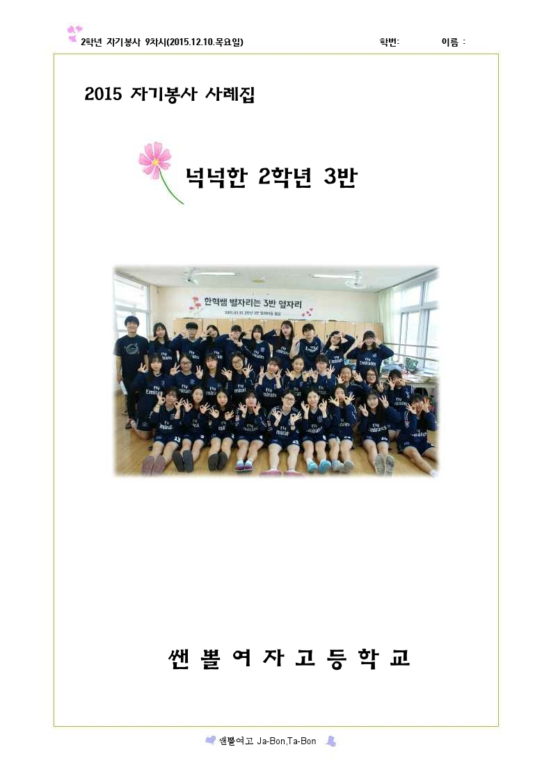 쌘뽈여고 자기봉사 사례집 2-3