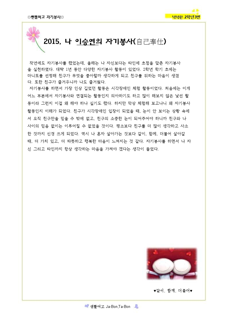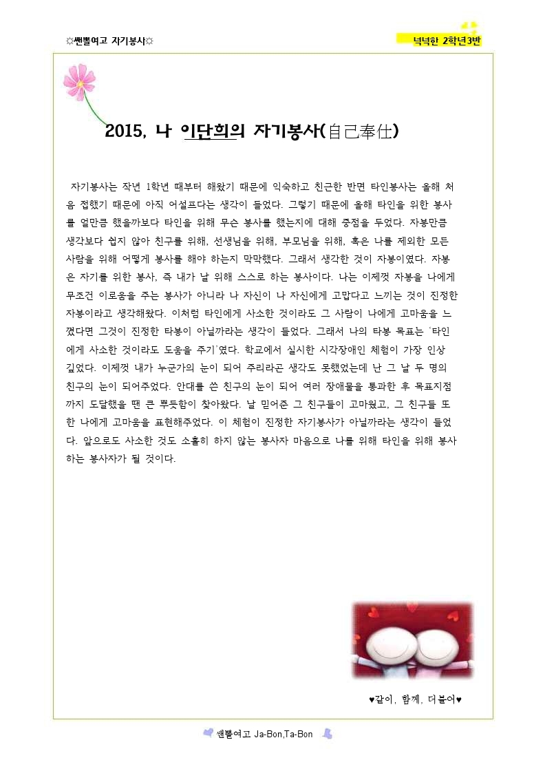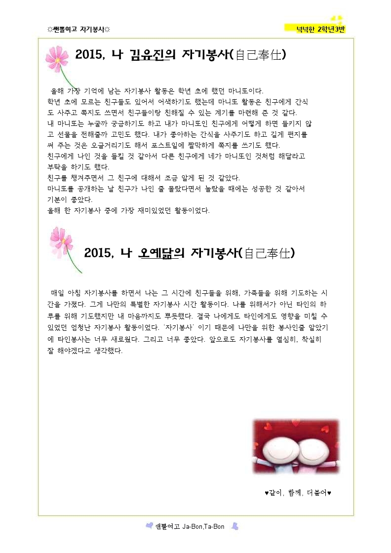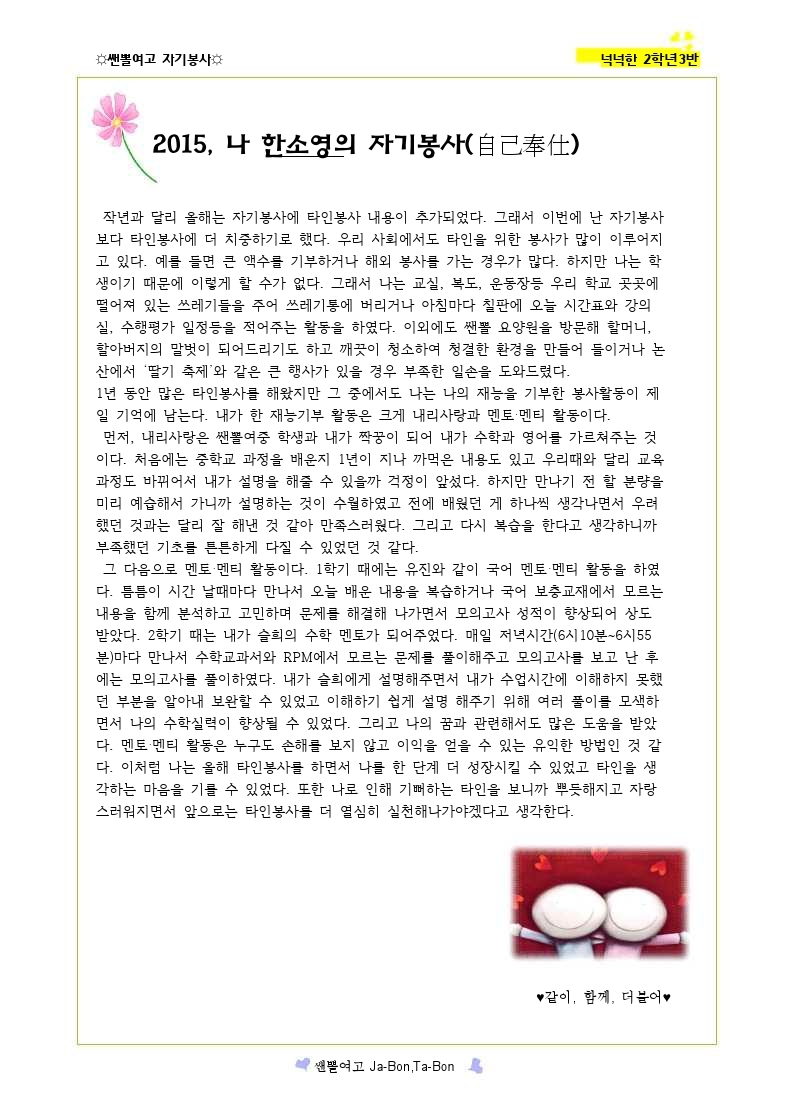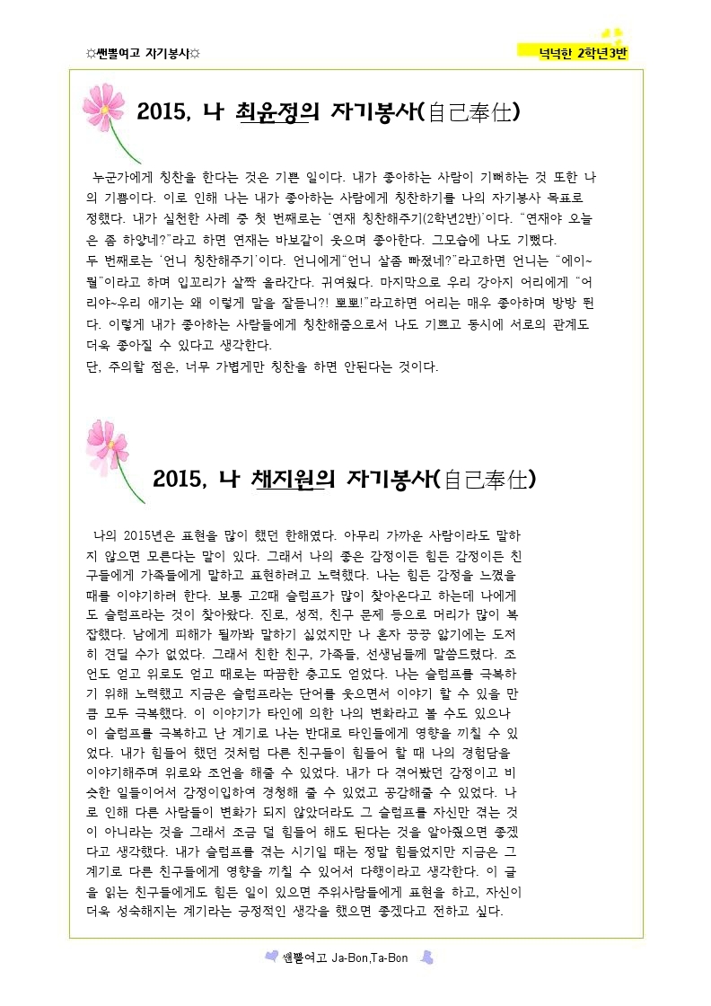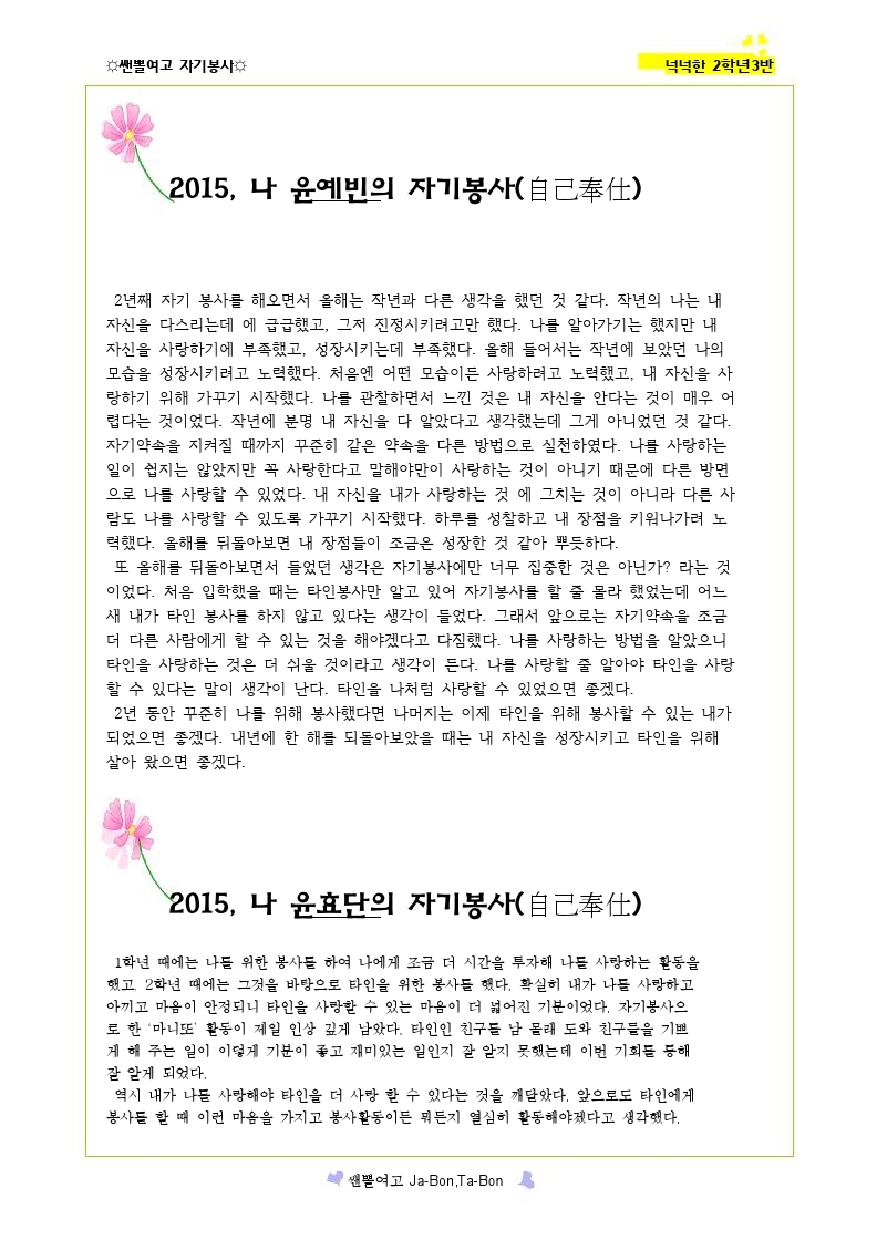 쌘뽈여고 자기봉사 사례집 2-3