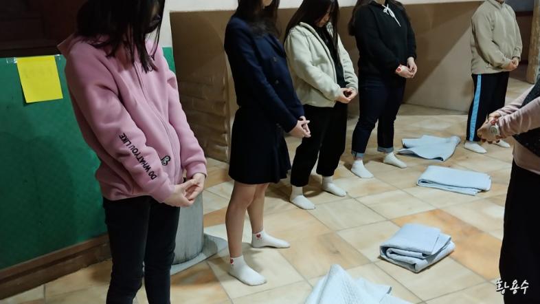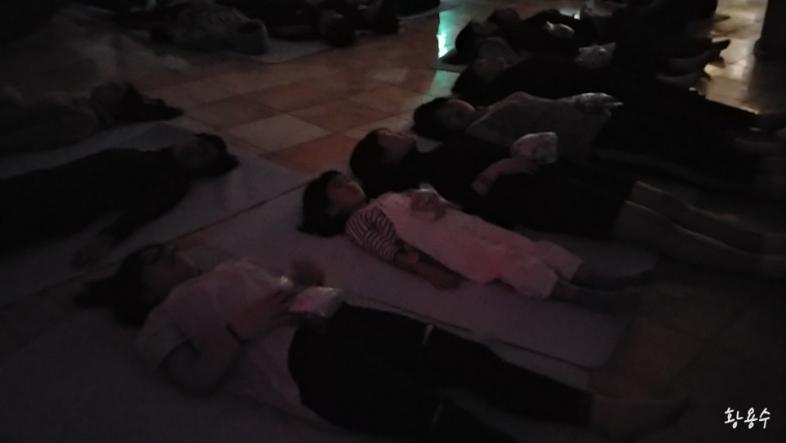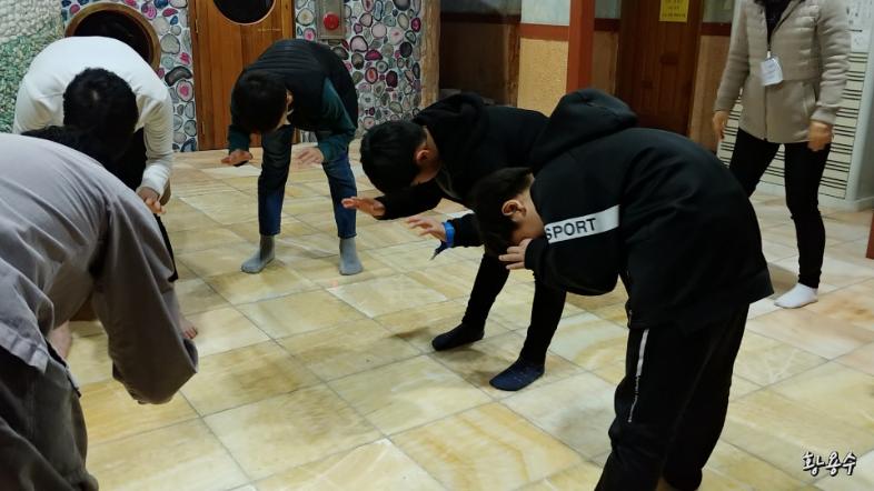 친구들에게는 목욕보조와 저녁식사,행법 1회, 빛나주머니를 가지고 와식수련 15분을갖을때는 심법을 깊이 인식하도록 지도하였으며,