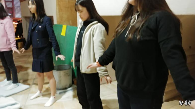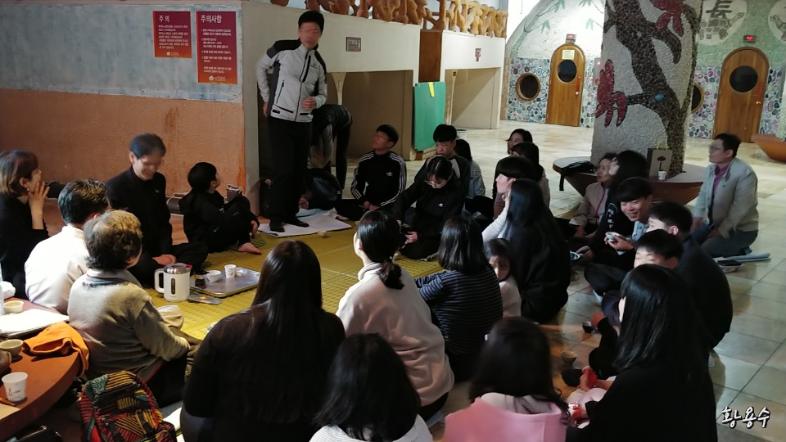 봉사에 들어가기전 봉사자들은 1시간전에 모여서 봉사원 봉사원장님께서,화명실장님.진송사범님과 함께 봉사자에게 봉사에 임하기전