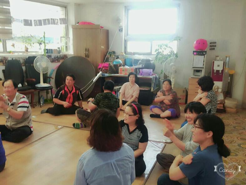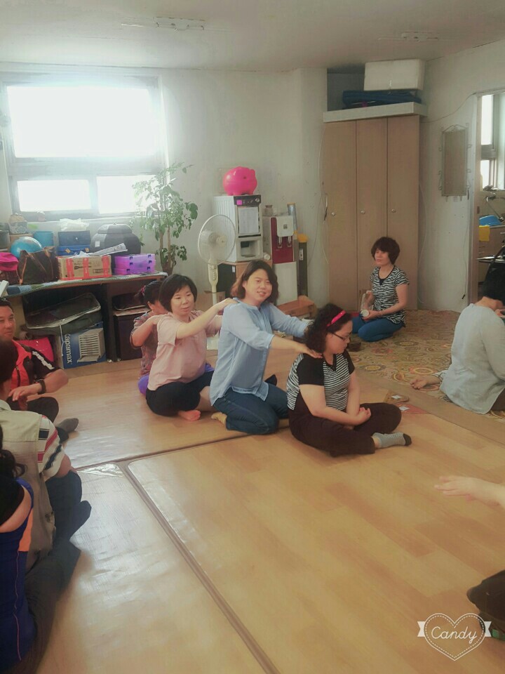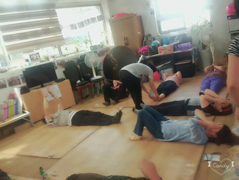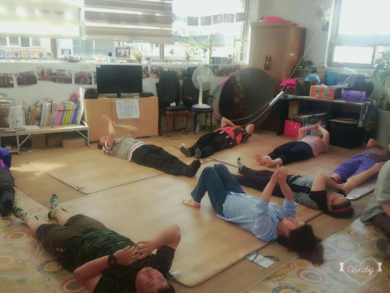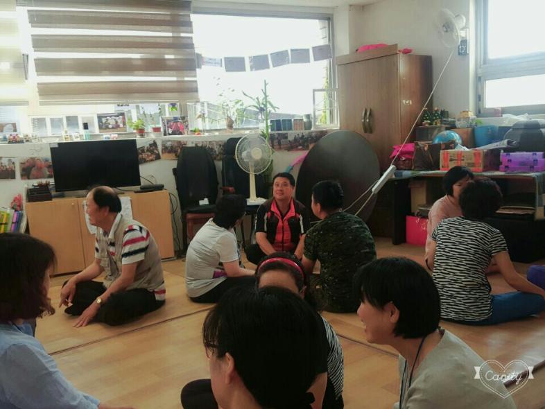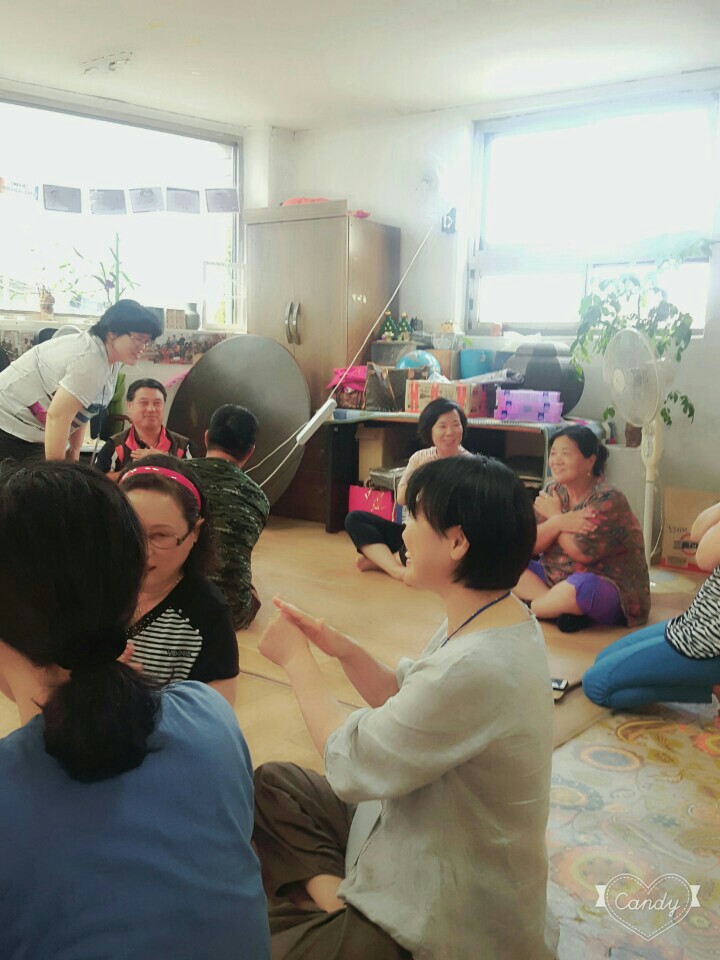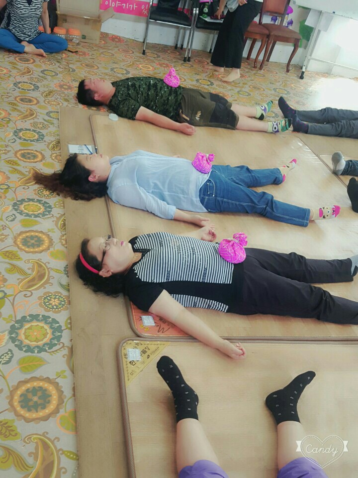 '자기 자랑하기'가 끝난 후, 빛나주머니를 사용하여 '와식수련'을 실행하였습니다. 참석자들께서 모두 자리에 편안히 누워서, 심신의 이완과 안정을 체험해보는 시간을 가졌습니다.^^