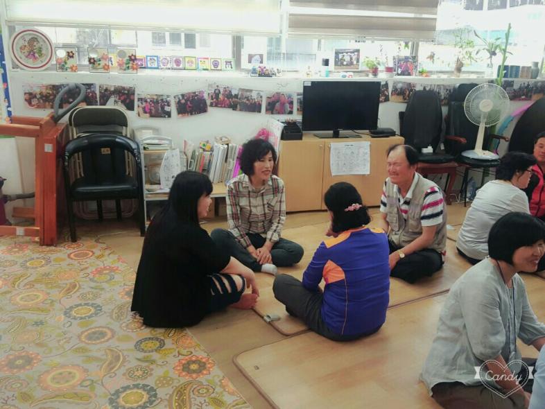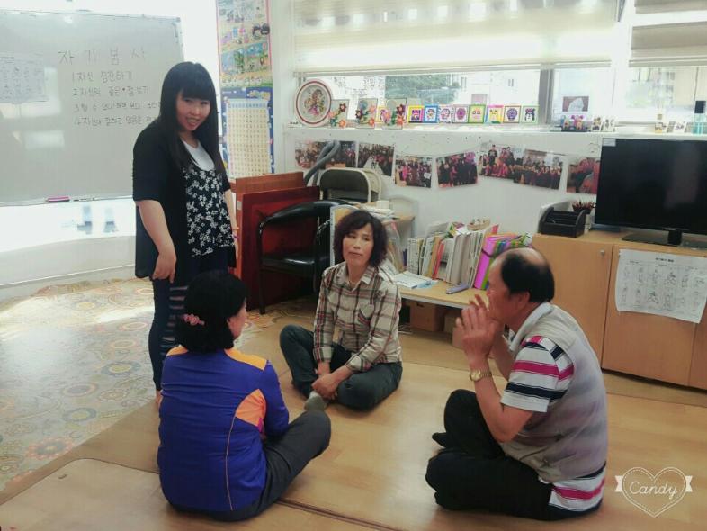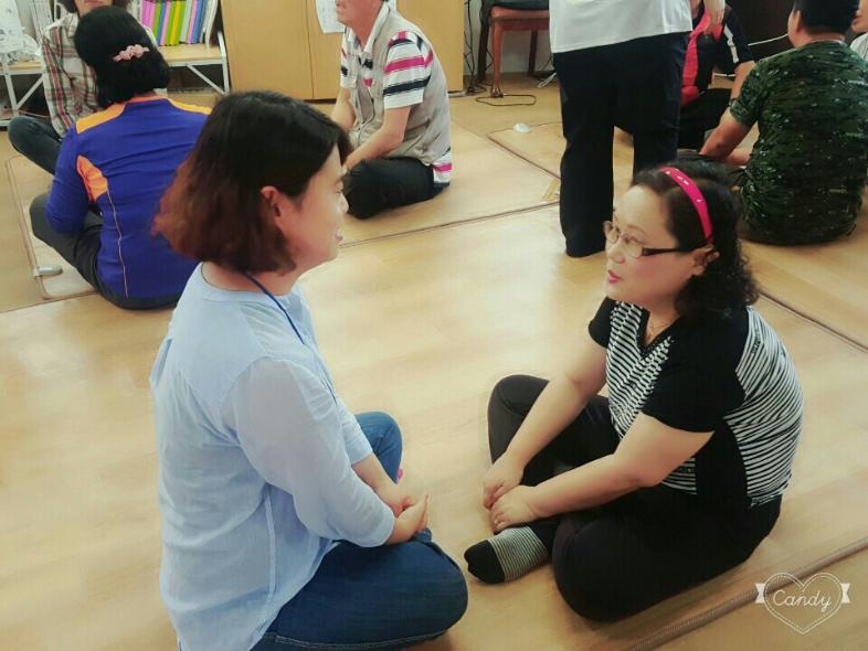 '자기봉사 행법' 이후에 '2인 1조'로 혹은 자원봉사자님들이 함께 보조로 짝을 이루어서, 각자 자신에 대하여 '자기 자랑하기'시간을 가졌습니다.^^