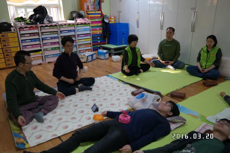 끝으로, 봉사활동의 마지막 시간에 어르신들과 자원봉사들이 같이 함께 더불어 '와식수련'을 실행하였습니다. 이번 봉사활동에 함께 참여한 학생봉사자들 또한 빛나주머니를 통해 와식수련을 하므로, 안정적이고도 편안한 시간을 체험하였습니다^^