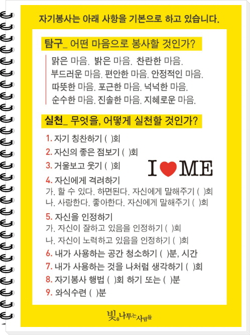 하루 하루 실천하면 먼 훗날 내 가족 사회 이웃을 밝게 하는