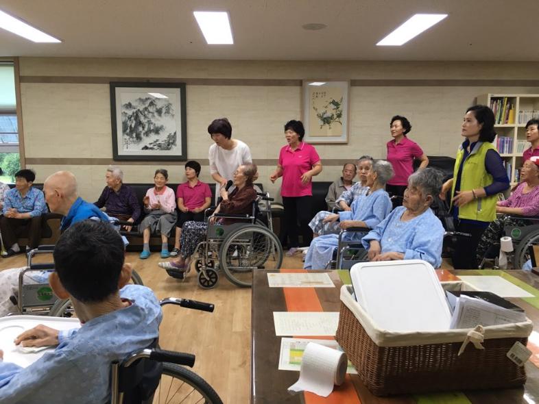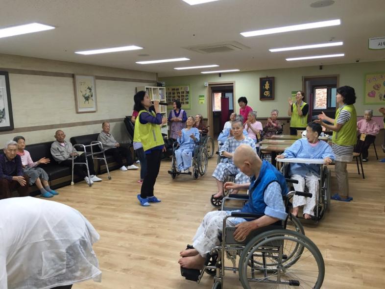 ㅇ 활동내용 : 체조, 노래부르기, 안마해드리기, 말벗