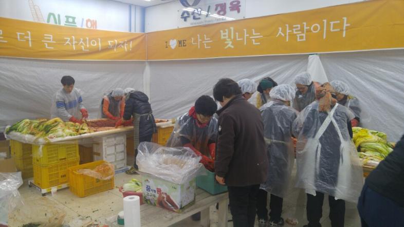 지난 12월 8일~10일에 수원에서는 소외계층 지원을 위한 김장 봉사가 있었습니다. 쌀쌀한 날씨에도 많은 자원봉사자님들께서 참가하시어 밝은 정성과 따뜻한 마음을 나누어 주시었습니다.