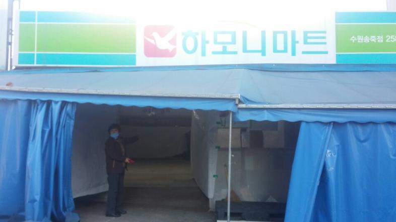 많은 물량의 김장을 할 만한 장소 구하기가 쉽지 않았는데, 수원의 하모니마트 조원점 사장님께서 장소를 협찬해 주셔서 어렵지 않게 김장을 할 수 있었습니다.