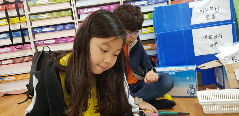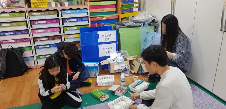 할머님, 할아버님께서 오시기 전, 의료봉사를 위한 물품들을 준비합니다.