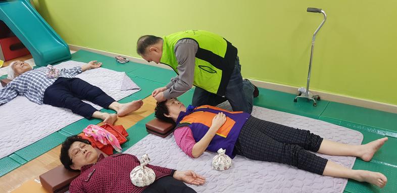 깊고 밝은 숨을 쉬실 수 있도록 말씀을 드리니 편안하다고 좋아하십니다.