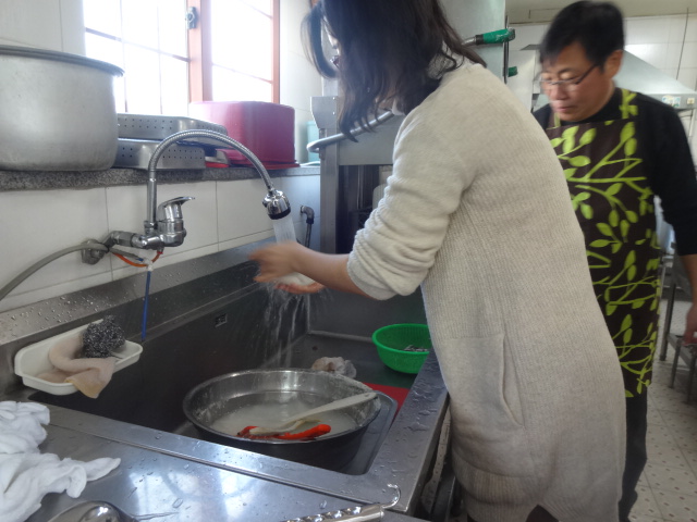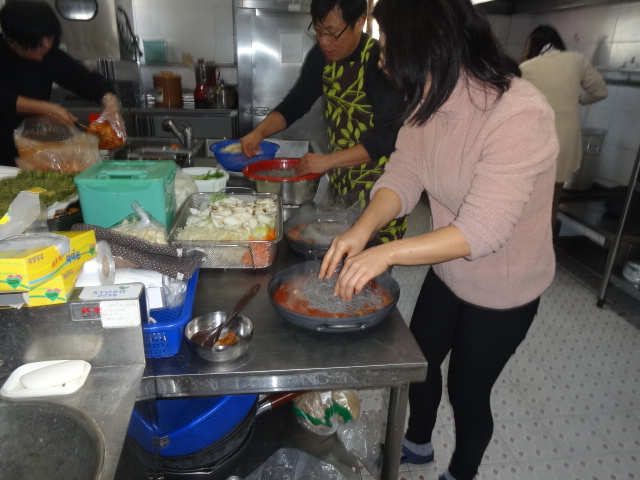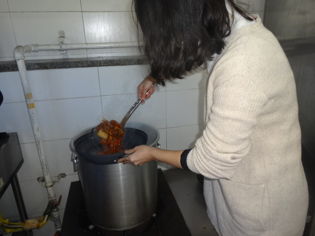 봉사자님의 배려로 보육원 조리사와 함께 돼지 갈비찜을
