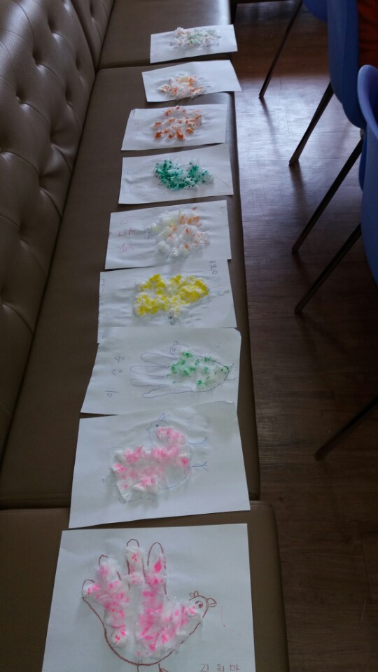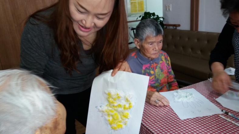 노인미술수업 (자신의 손을 따라그려 병아리표현)