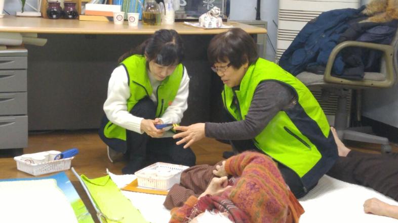 의료기구를 빠르게 분류하고 정리하시며 세심하게 뜸과 선침을 붙여주시는 담*님!
