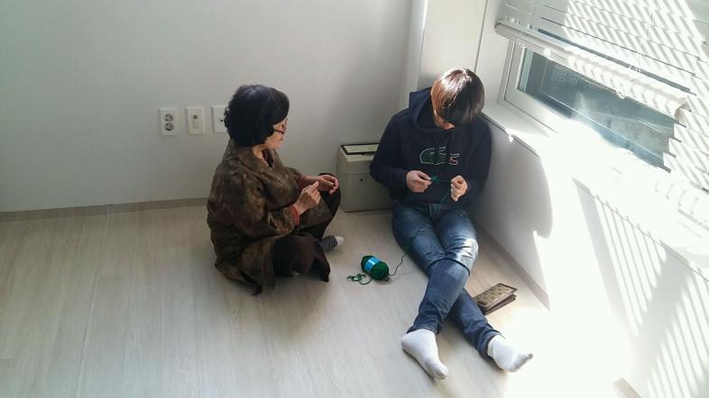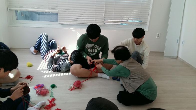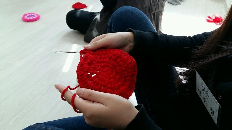 학생들이 한땀한땀 정성을 들여 뜬 쑤세미는 어려운 이웃을 돕기위한 기금마련을 위해 기부됩니다.