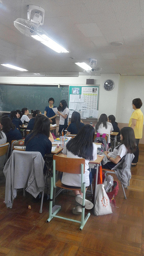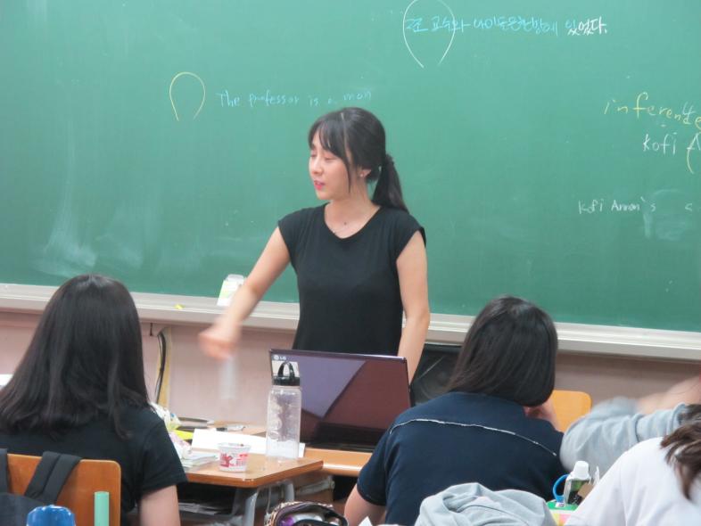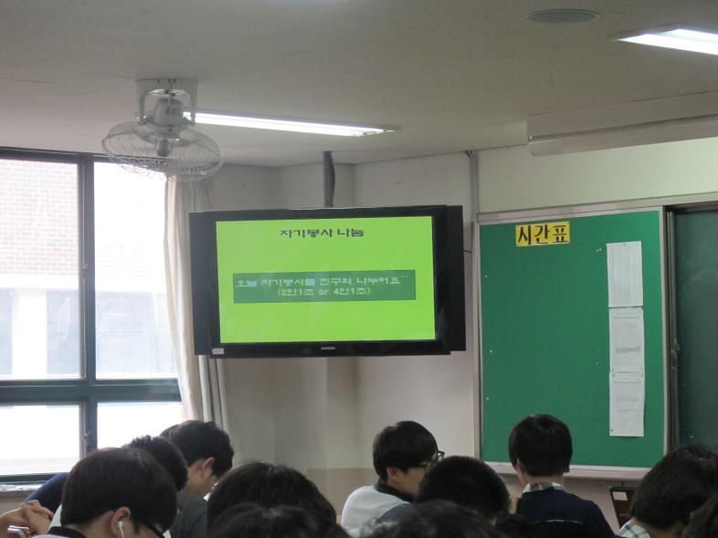 다른 학교에서 진행되고 있는 자기봉사 사례를 동영상으로 보는 시간이었는데