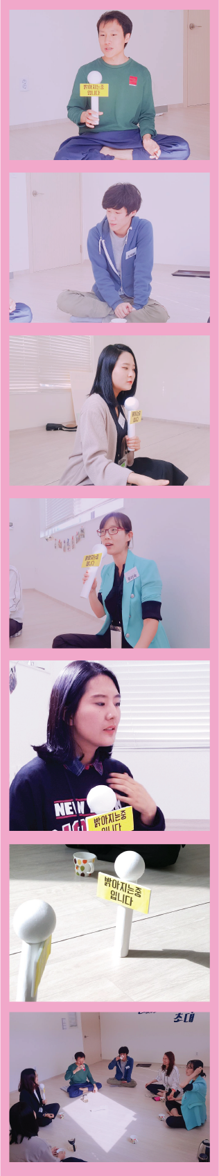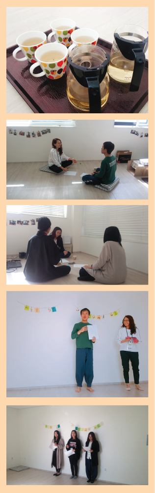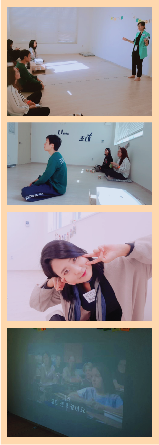 자연스럽게 서로에 대해 공유를 하며 보다 더 밝은 표현으로 나를 표현할 수 있도록 신경 쓰며 나의 밝음에 집중하였습니다.