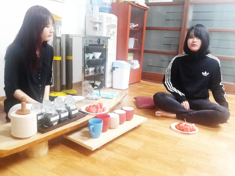 과일 먹고 차 마시면서 그동안 근황토크 하다가