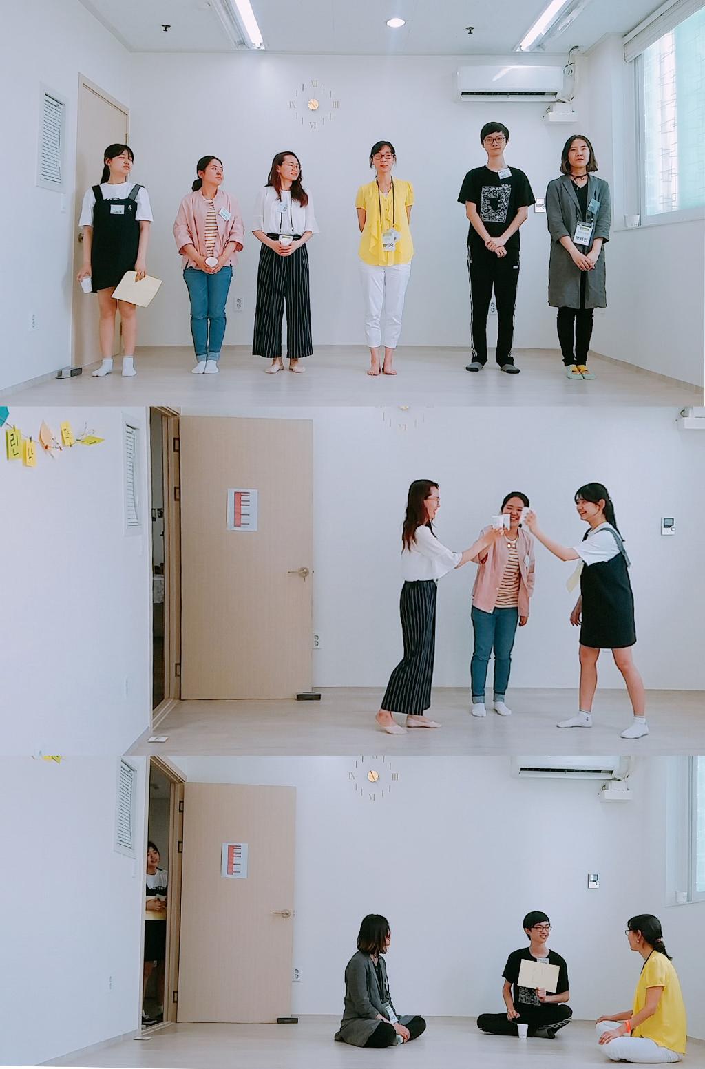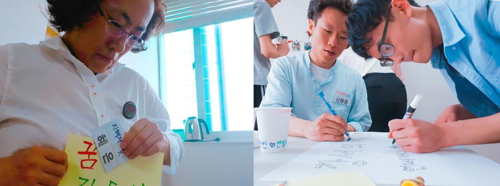 서로 이야기를 한 뒤 연극 시나리오를 짜는 시간을 가졌습니다.