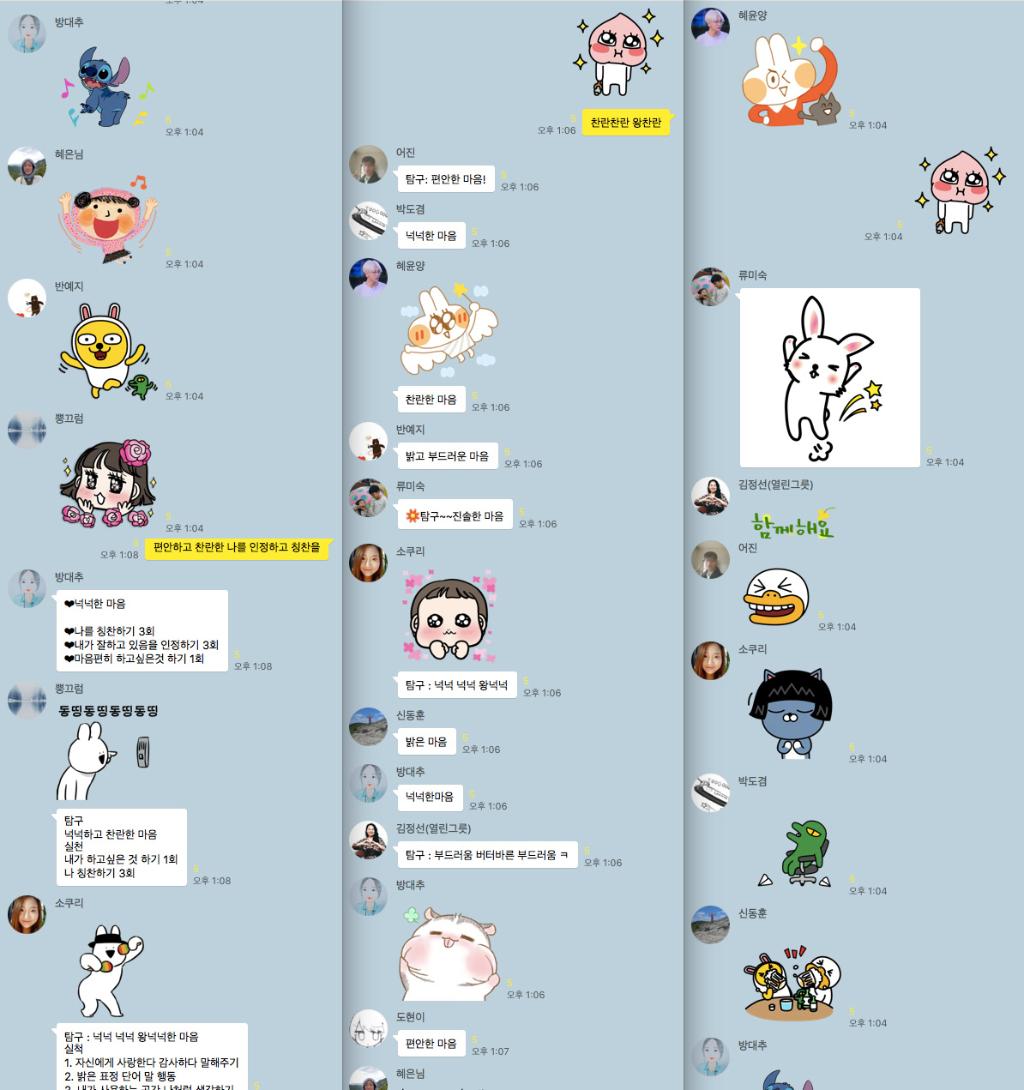 버터 바른 듯이 부드럽고 넉넉하다 못해 넉넉넉넉한 훈훈한 카톡방이었습니다.