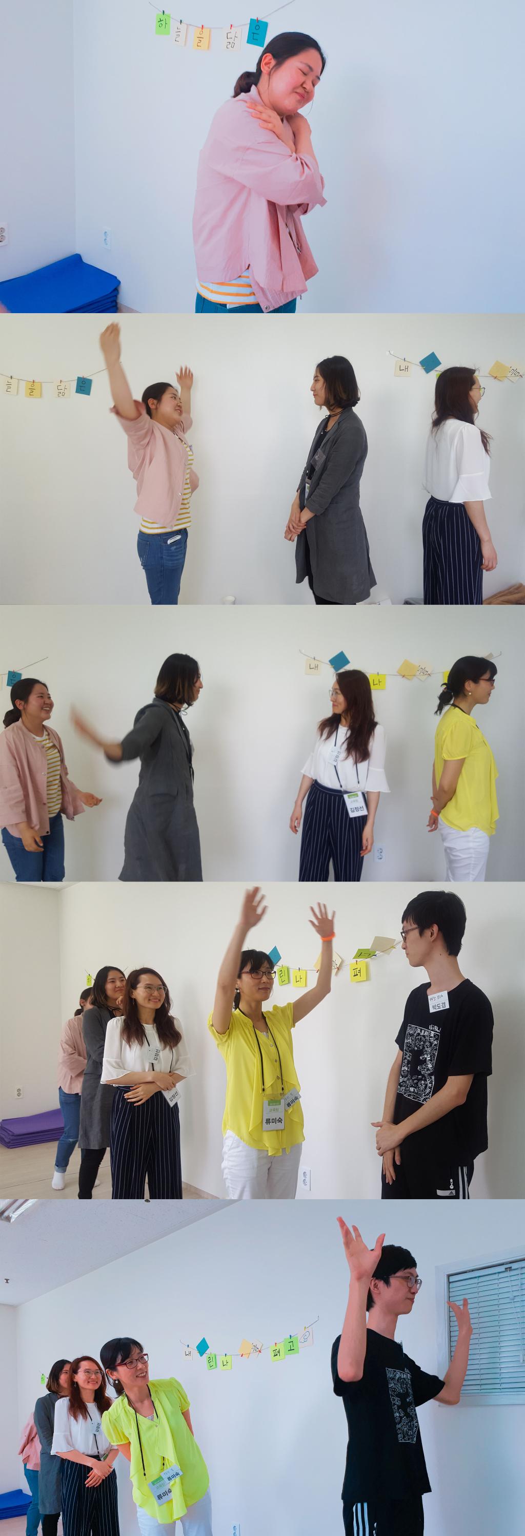 몸으로 12품성을 표현하며 몸도 풀고 마음도 여는 ‘몸으로 마음해요' 놀이를 했습니다.