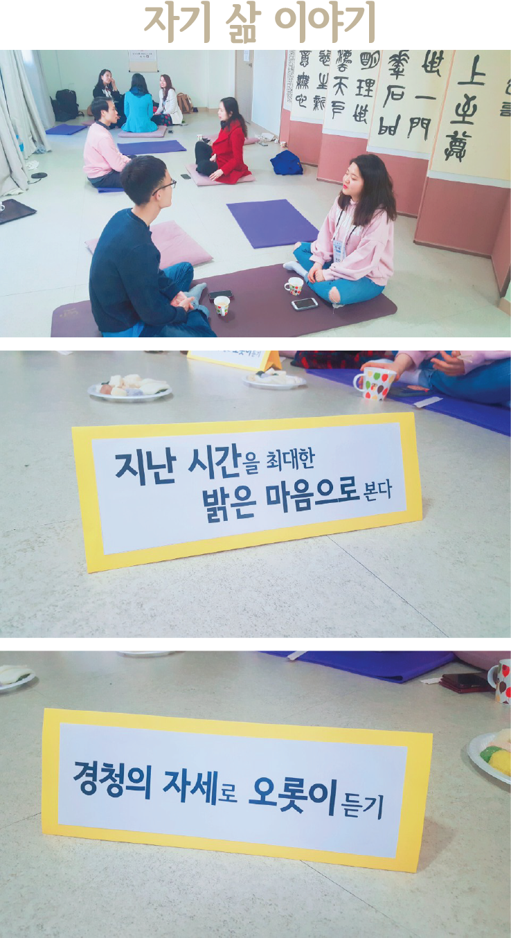 2인 1조로 자기 삶 이야기를 각각 10분씩 하였습니다.