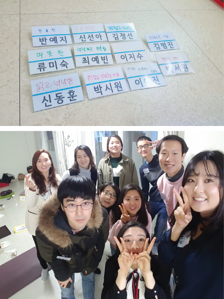 오늘 어떠한 마음과 마음가짐으로 하루를 임할 것인지에 대해 설정하면서 자신의 이름표를 완성하였습니다.